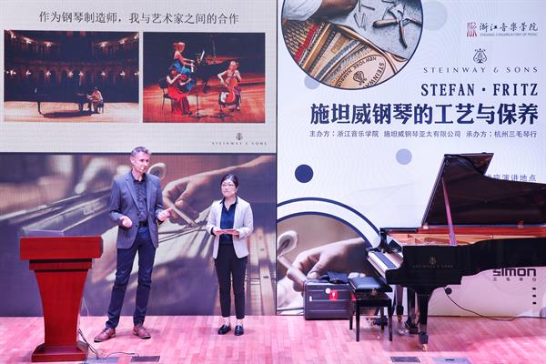 11月9日下午,教学与艺术实践服务中心邀请了施坦威STEINWAY音乐会技师Stefan Fritz先生为全院师生们带来了“施坦威钢琴的工艺与保养”讲座。此次活动由教服中心、施坦威钢琴亚太公司、杭州三毛琴行联合主办。