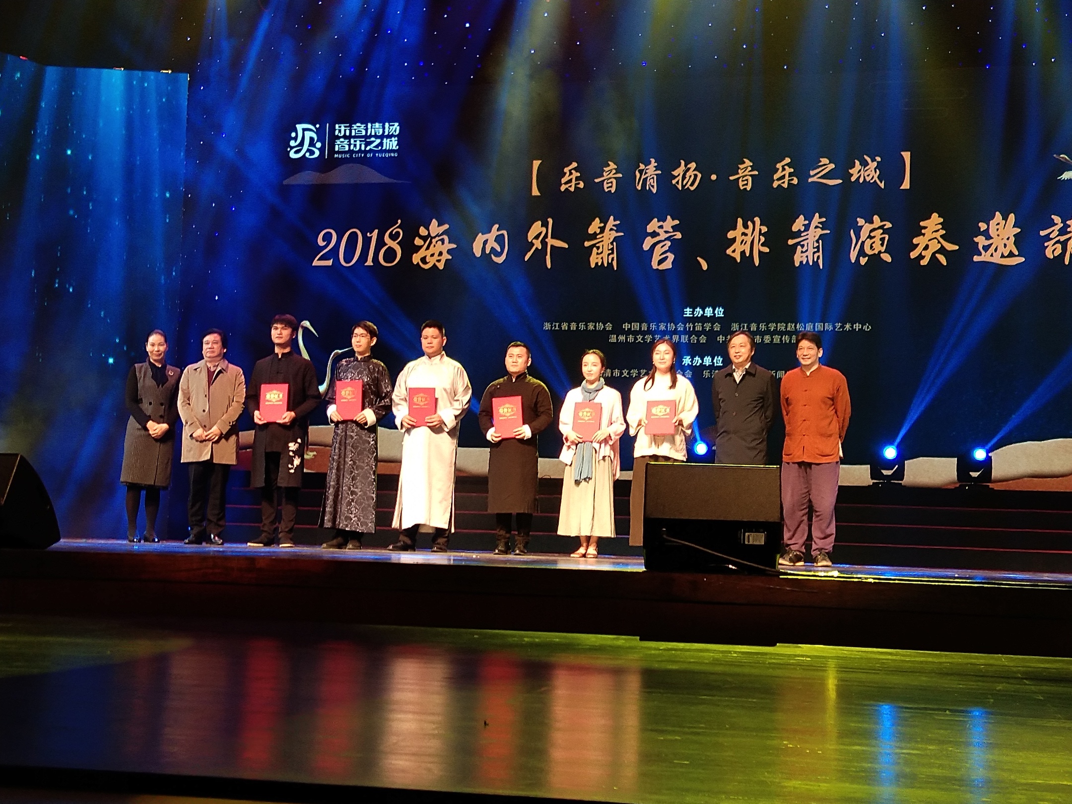 据悉,本次比赛由浙江省音乐家协会、中国音乐家协会竹笛学会、浙江音乐学院赵松庭竹笛国际艺术中心、温州市文联、乐清市委宣传部主办,乐清市文联、乐清市文广新局承办,来自全国近百名选手参加了比赛。其中,箫管演奏的比赛分业余中青年组、专业青年组和业余青少年组等三个组别,排箫演奏的比赛分业余成年组、业余青年组、业余少年组、业余组合组、专业青年组、专业组合组、专业成人组等七个组别。