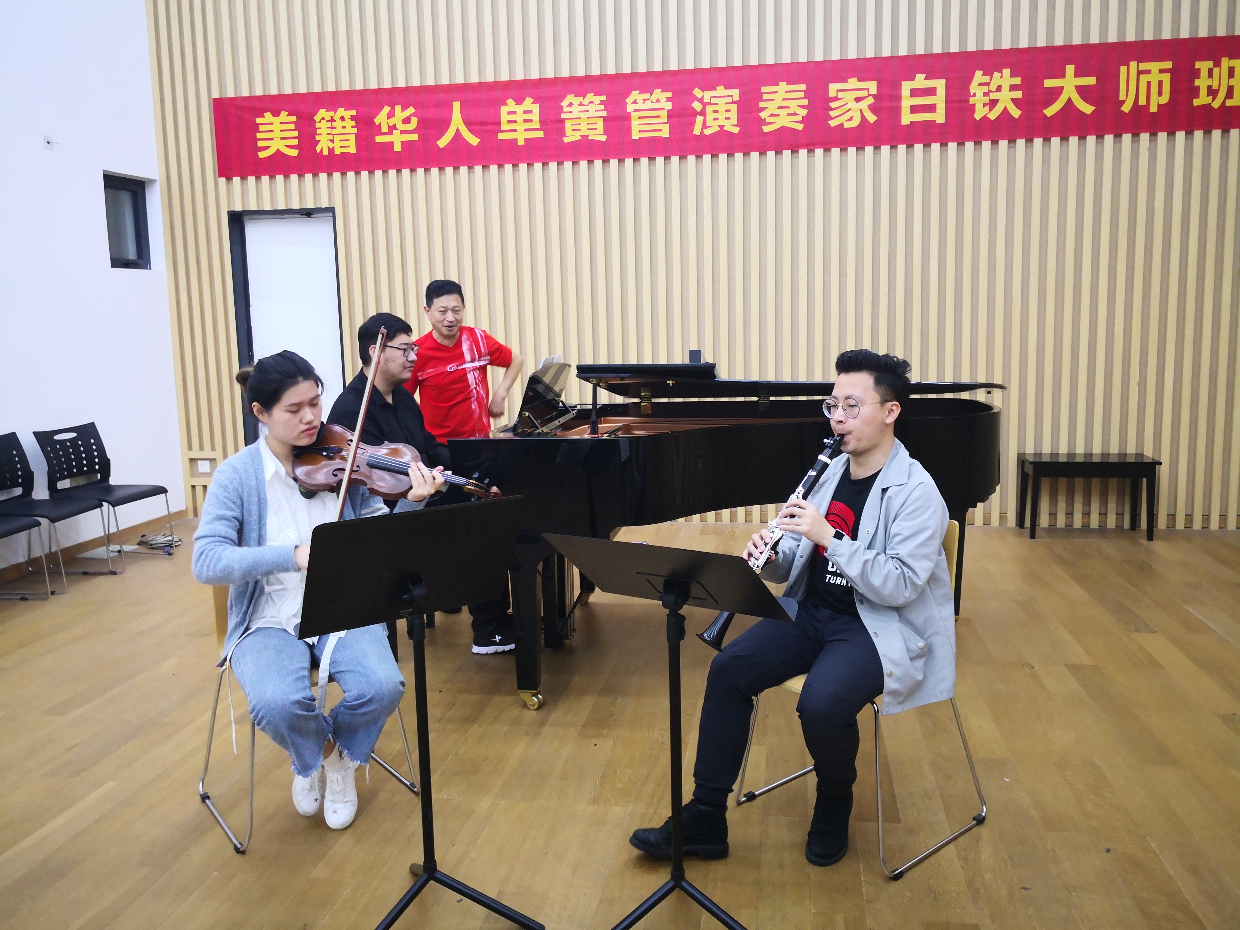 4月25日至26日,美籍华人单簧管演奏家白铁教授应邀在我院管弦系举办了大师班。