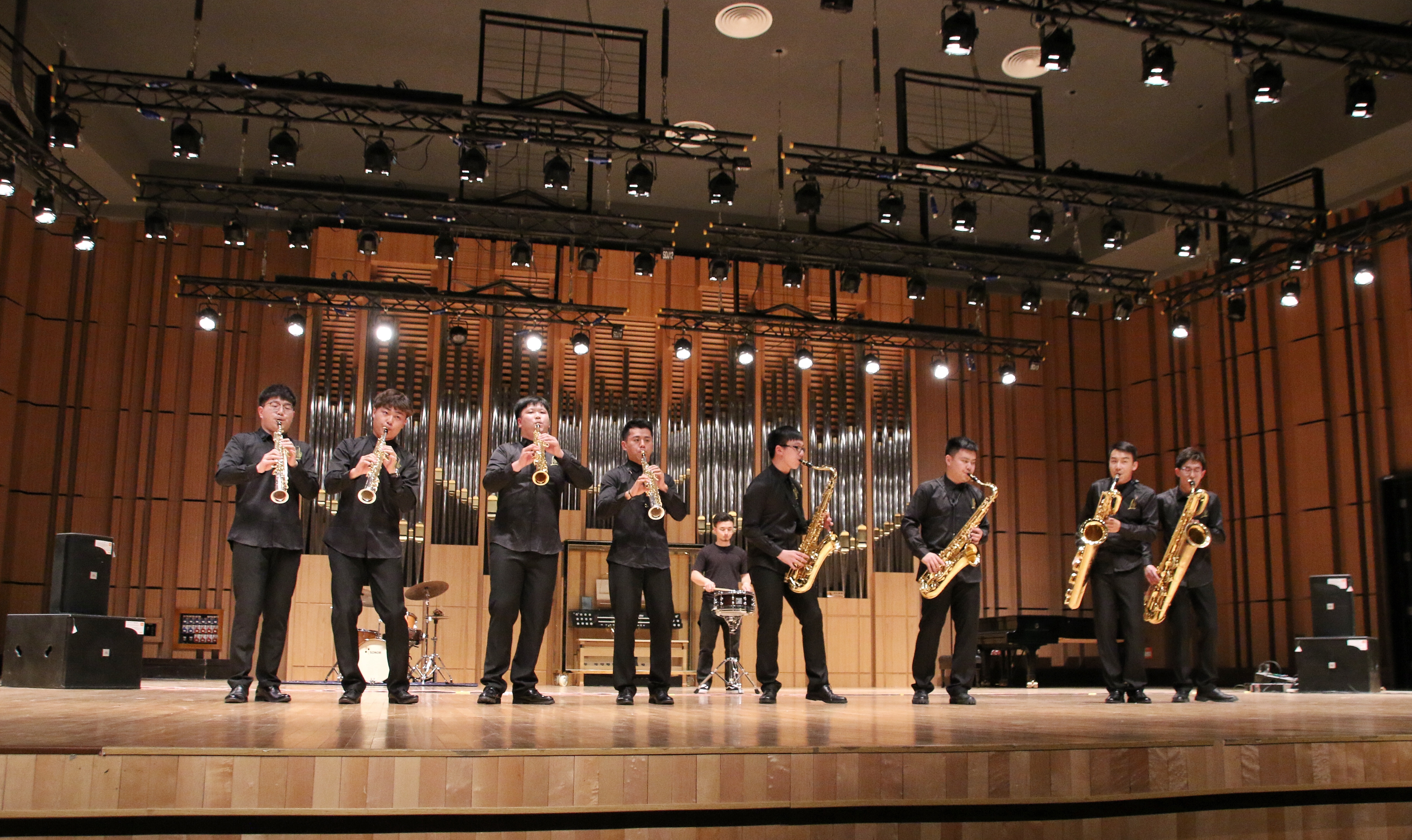 据悉, “L”萨克斯管重奏团是由青年萨克斯演奏家、流行音乐系教师娄洋倾力指导专业萨克斯管乐团,乐团成员由我院在校萨克斯管专业学生及校友组成,他们的专业演奏水平精湛,并在蜂鸟音乐节、西湖音乐节等诸多赛事中屡次获得金奖。