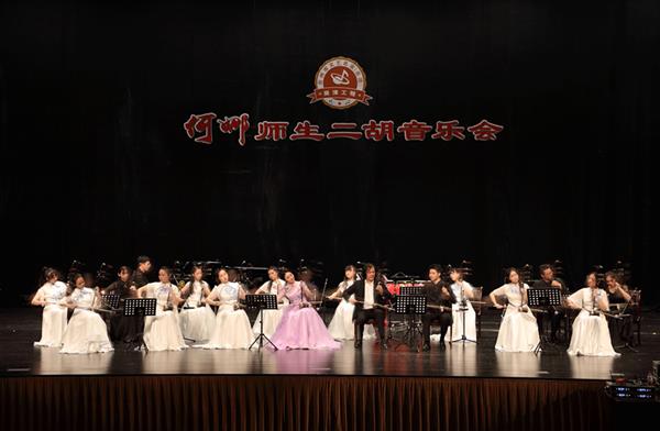 为庆祝中华人民共和国成立70周年,9月12号晚,国乐系青年二胡教师何娜携学生在台州市黄岩文体中心举办了一场何娜师生二胡音乐会。该音乐会由台州市文化和广电旅游体育局主办,并入选台州市文艺名家名团展演工程。