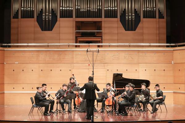 除了挑战自我的演奏能力外,李佳胤也在不断挑战他对音乐的把控能力,以及在教学实践中不断的新尝试。今年,他参与组建与指导的新古典重奏乐团(NeoKlassic 重奏乐团)也在音乐会中精彩亮相。这支曾在“友心杯”、“蜂鸟杯”等国内赛事获奖的重奏组合,为大家献演了德沃夏克的管乐重奏作品《d小调管乐小夜曲》,惊艳全场。
