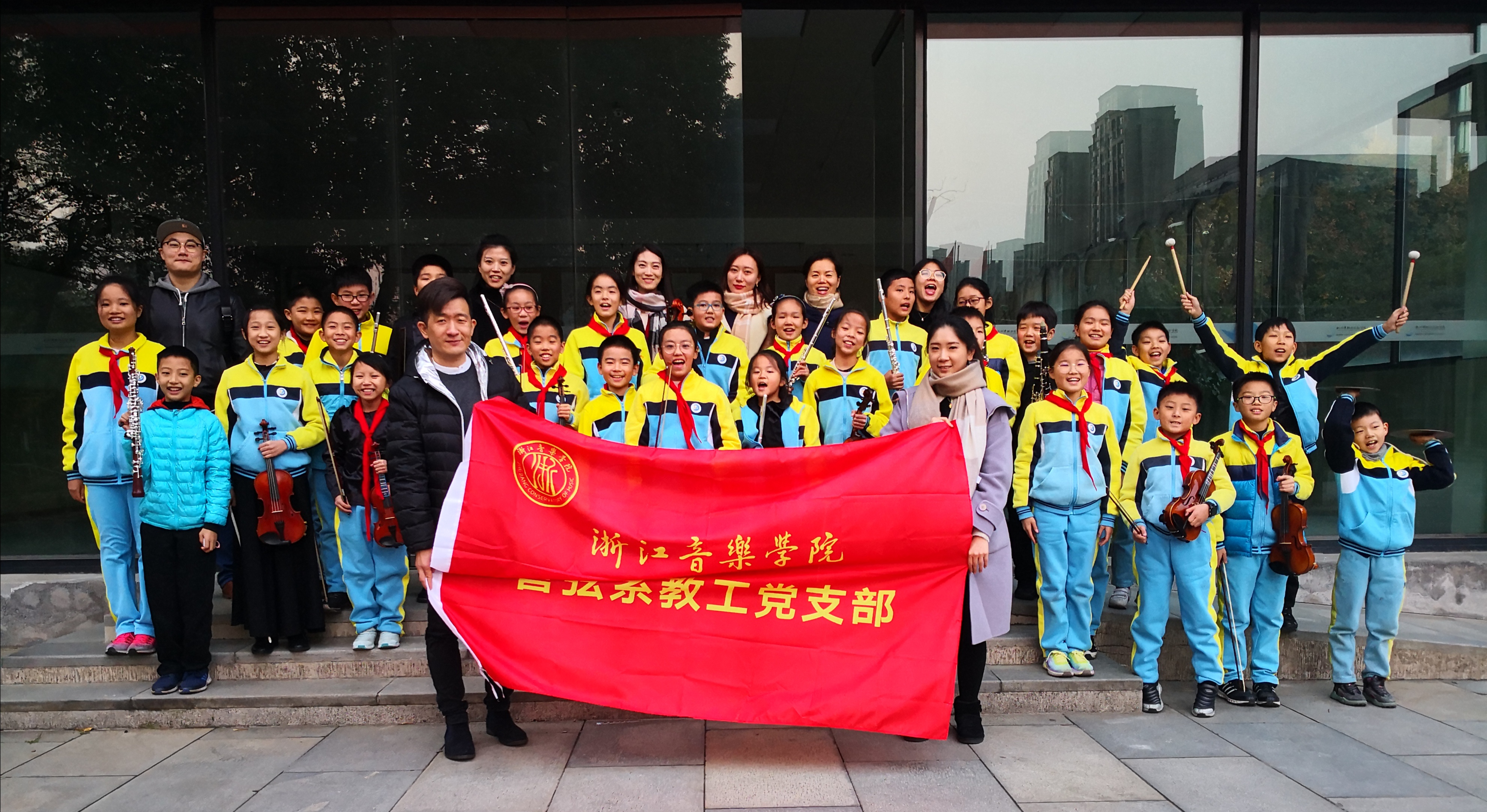 12月2日下午,管弦系教工党支部前往浙江省百年名校盛誉的杭州市胜利实验学校开展义务志愿服务活动,现场指导小学生管弦乐团30余名师生排练演奏。
