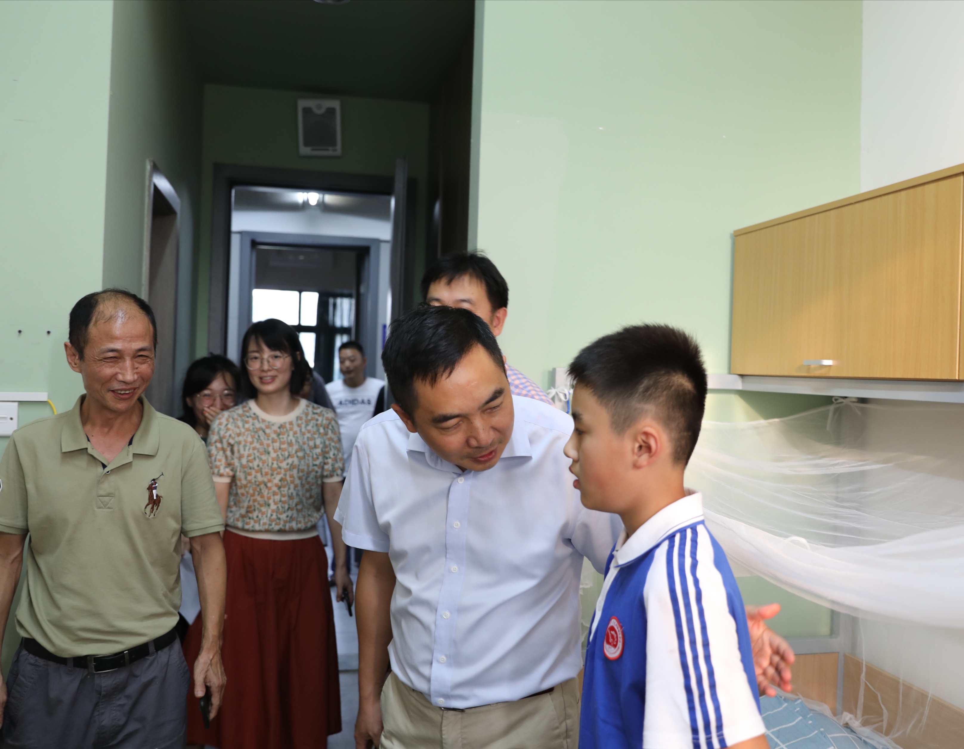 当天下午,在新生见面会和入学主题班会结束后,附中领导班子成员在德育处、综合管理处、学段长的陪同下,先后来到寝室看望新生,亲切询问新生入学感受、新环境适应情况,并听取了新生对学习生活的意见和建议。晚上,德育处、学段长及新生班主任还走进寝室与学生面对面互动交流,帮助学生尽快适应新环境、尽早进入新角色。