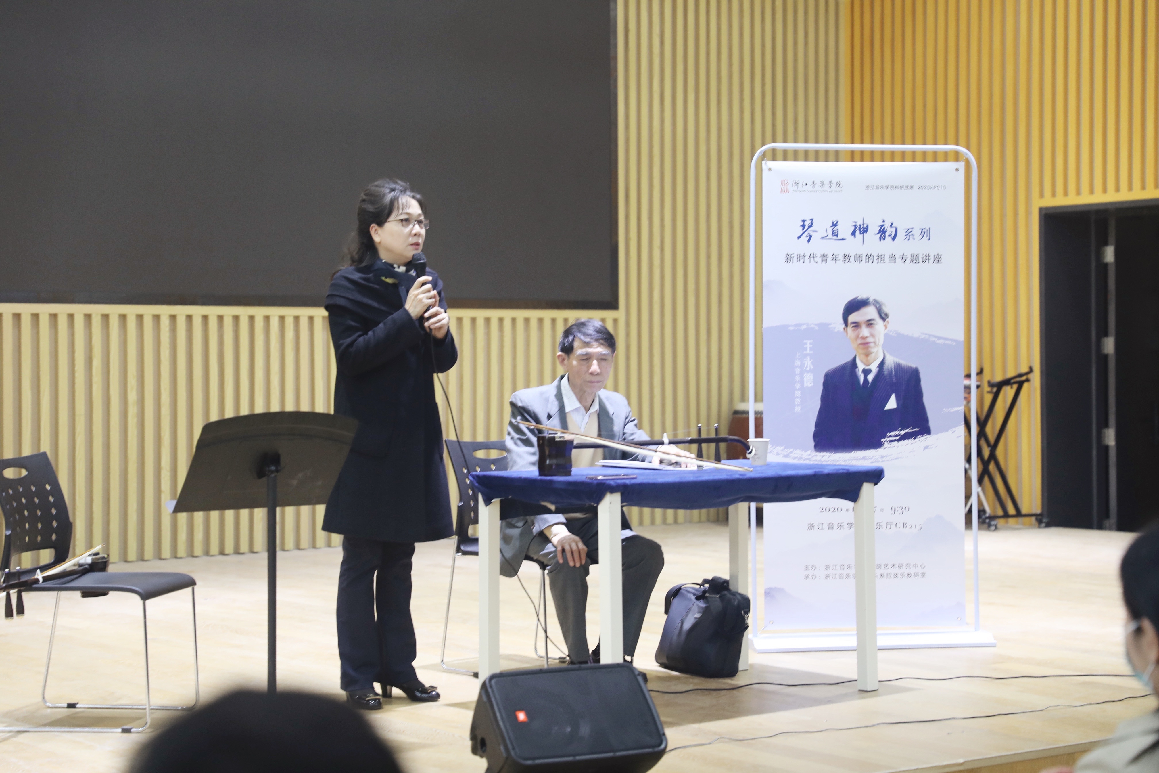 为了让青年教师在机遇与挑战并存的背景下,强化责任担当、找准发展定位、提升综合素养,11月16日至17日,学校二胡艺术研究中心主办了两场“琴道神韵”系列师资培训专题讲座。活动邀请著名指挥家、作曲家杨春林教授,二胡教育家、演奏家、上海音乐学院王永德教授主讲,二胡艺术研究中心主任、国乐系拉弦乐教研室主任许奕教授担任主持。