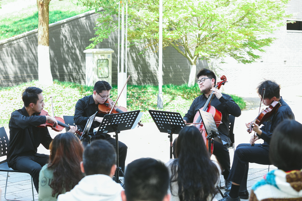 活动中,来自各系部的20余名同学围坐在草坪上,齐声诵读《相信未来》等经典诗篇并交流感受。与朗朗书声相伴的,还有管弦系学生带来的弦乐四重奏、国乐系学生的竹笛和琵琶演奏,以及流行音乐系学生的吉他弹唱。最后,学院朗诵艺术社为同学们带来了诗朗诵《闪耀吧,青春的火光》,赢得阵阵掌声。活动结束后,同学们纷纷表示对“相约春天、共享书香、以书会友”阅读方式的喜爱。许多同学还借此活动向祖国深情告白、向中国共产党百年诞辰倾情献礼。