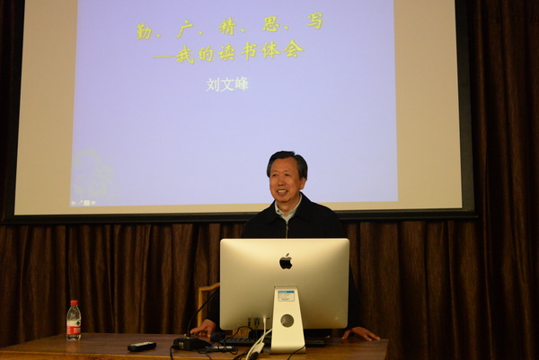 此次讲座是学院第六届“书香·望江山”读书节系列活动之一。讲座中,刘文峰从“勤、广、精、思、写”五个方面,阐述了怎样读书,以及怎样才能读好书的话题。他指出,读书要思考和消化,特别是注重将读书所得化成文字、作出成果,尤其对于教师而言,更要注重把自己读书的成果传授给学生。