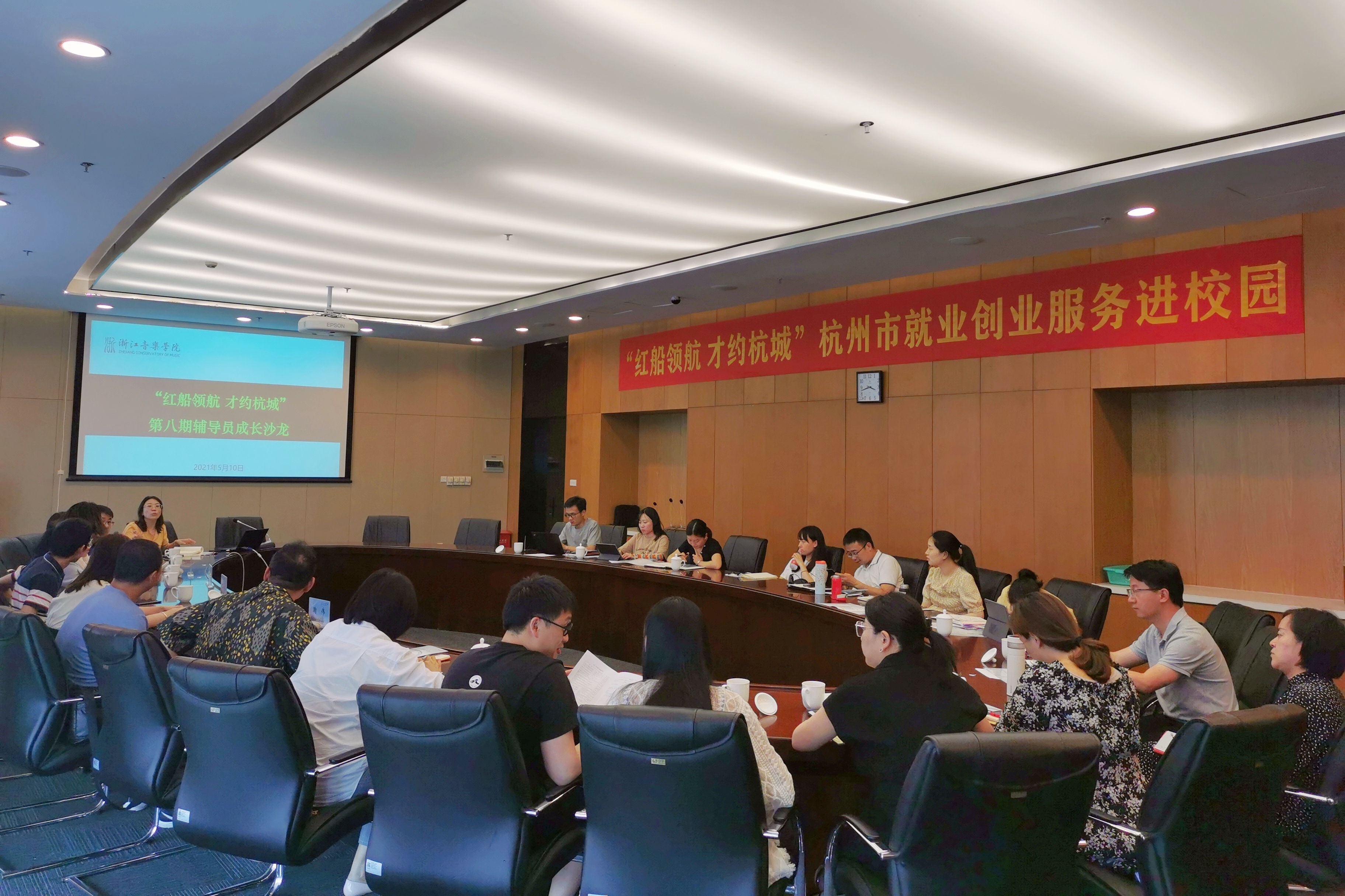 5月9日下午,“红船领航 才约杭城”杭州市就业创业服务进校园活动暨学院第八期辅导员沙龙活动在行政楼304会议室举行。学生工作部全体教职工、各系(院)学生工作负责人及全体辅导员参加了本次活动。