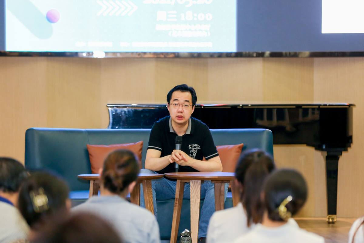 活动采用宁峰与学生面对面座谈的形式展开。现场气氛热烈而活跃,针对同学们提出的问题,宁峰逐一进行了解答与分享。他特别阐述了旅居海外期间,对祖国的深深眷恋和矢志不渝的热爱。对于同学提出的“如何完成从学生到演奏家的转变”,他认为,一站上舞台,就要充满自信,相信自己是演奏家,为观众呈现最好的演奏状态;但是下了舞台,要立刻回到学生的角色,活到老学到老,永远对知识保持谦逊,不断总结反思。此外,他还给予同学们室内乐演奏的一些建议,强调了演奏中配合的重要性,并分享了初到国外求学时的趣事。“我希望外国人在提起中国时,想到的不只是中国功夫、美食等,我想证明中国人对西方古典音乐的演奏也可以成为标杆”,这一观点激发了同学们的共鸣。同学们纷纷表示,通过此次沙龙,他们不仅收获了专业演奏方面的知识,也对自己今后的人生规划有了更明确的认识。