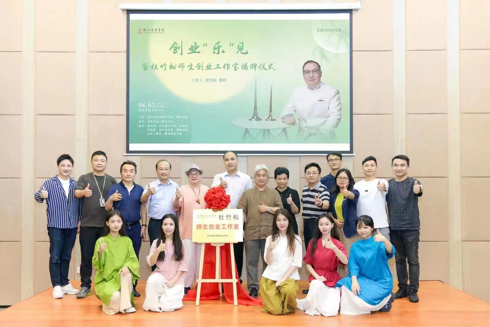乐创空间系列创业工作室是依托专业优势,以校园文化为特色方向,面向学生、教师和众多怀有创新创业想法的青年群体开放的一个创新、专业、共享、开放的创新创业孵化品牌。杜竹松师生创业工作室是集乐队培养、教学、演出、直播、乐器、音乐制作为一体的多元型创业团队,旨在丰富创业实践教育,在提升学生综合能力与社会经验的同时创造更多的就业岗位,带动有创业热情的学生勇于创新、敢于创业。创业学院将以此为契机,加强创新创业项目的培植和孵化,助力学院创新创业工作迈上新台阶。