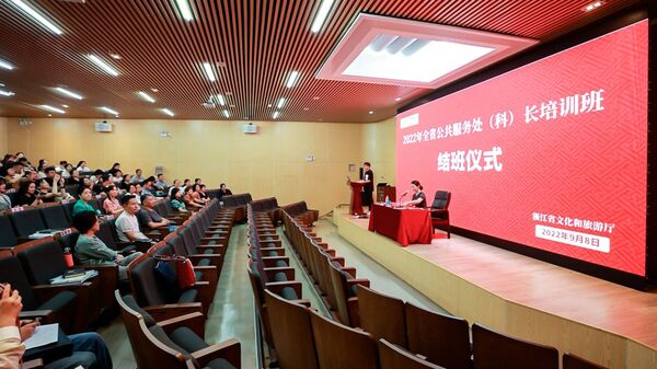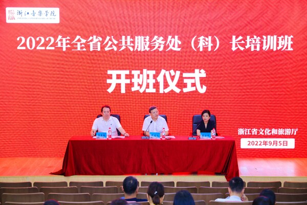 为推动公共文化服务工作高质量开展,切实提高全省公共服务处干部的管理水平和工作能力,打造充满创新活力的公共文化脊梁队伍,9月5日至8日,由浙江省文旅厅公共服务处主办,继续教育学院承办的全省公共服务处(科)长培训班在学院举办。学院党委副书记蔡亦军、省文旅厅公共服务处处长仲建忠及继续教育学院负责人出席开班仪式。