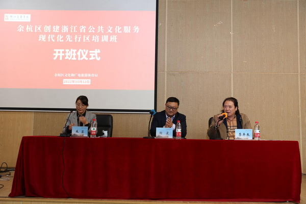 为切实提高公共文化发展水平,增强服务服务群众的能力,10月12日,余杭区创建浙江省公共文化服务现代化先行区培训班在学院开班。余杭区文化和广电旅游体育局党委副书记、副局长陶晨在开班仪式上作动员讲话,学院继续教育学院负责人致欢迎辞,余杭区文化和广电旅游体育局党委委员、副局长朱芸主持开班仪式。余杭区文化和广电旅游体育局、区文化馆、区图书馆、区小百花越剧艺术中心相关负责人、业务骨干,各镇街文化工作分管领导、党群服务中心负责人共40人参加培训。