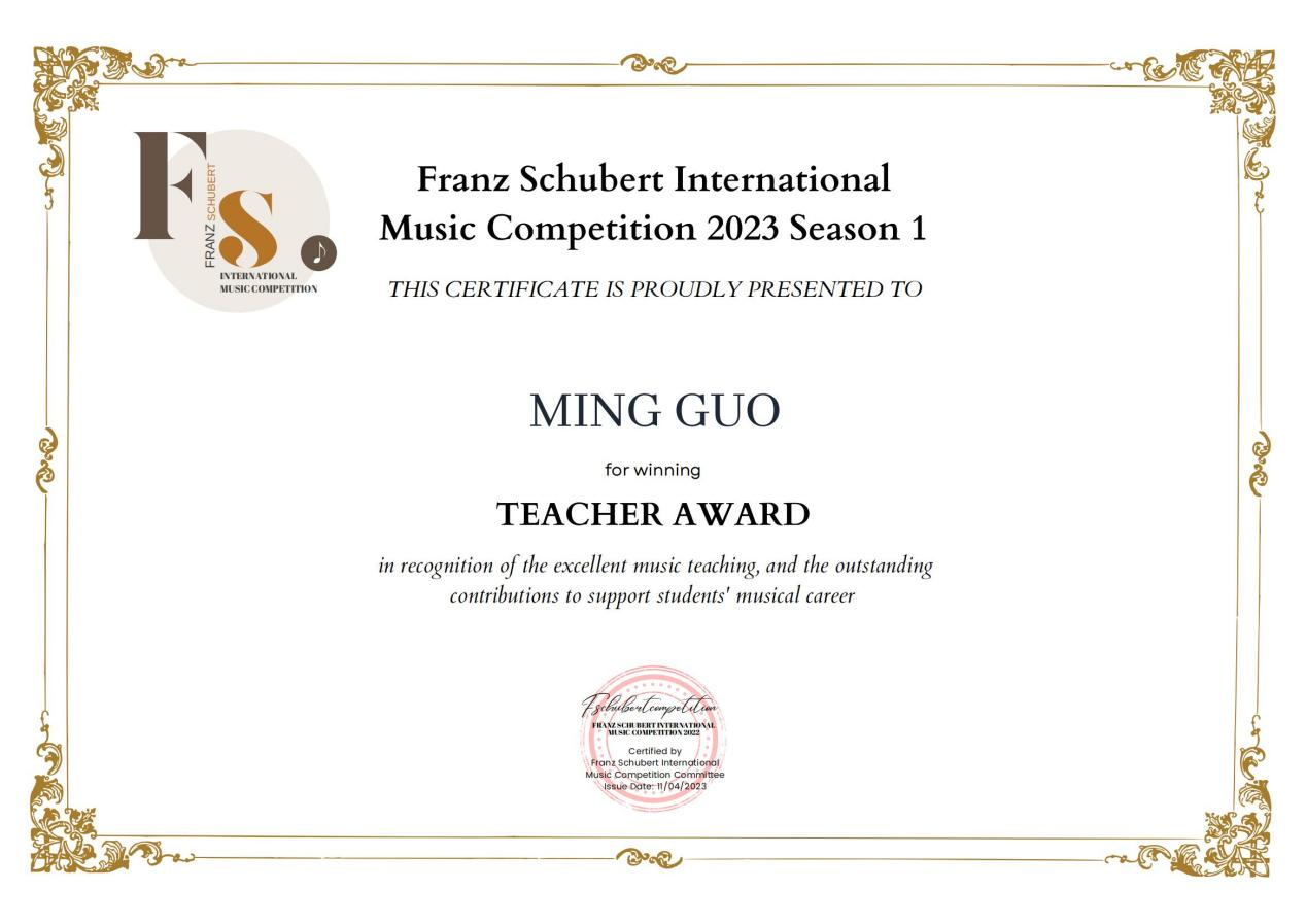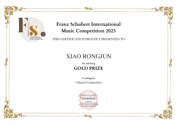 近日,2023弗朗茨·舒伯特国际音乐比赛(Franz Schubert International Music Competition 2023)落下帷幕,作曲与指挥系学生肖荣俊的室内乐作品《烁》(Bright)荣获金奖,郭鸣教授荣获优秀指导教师奖。