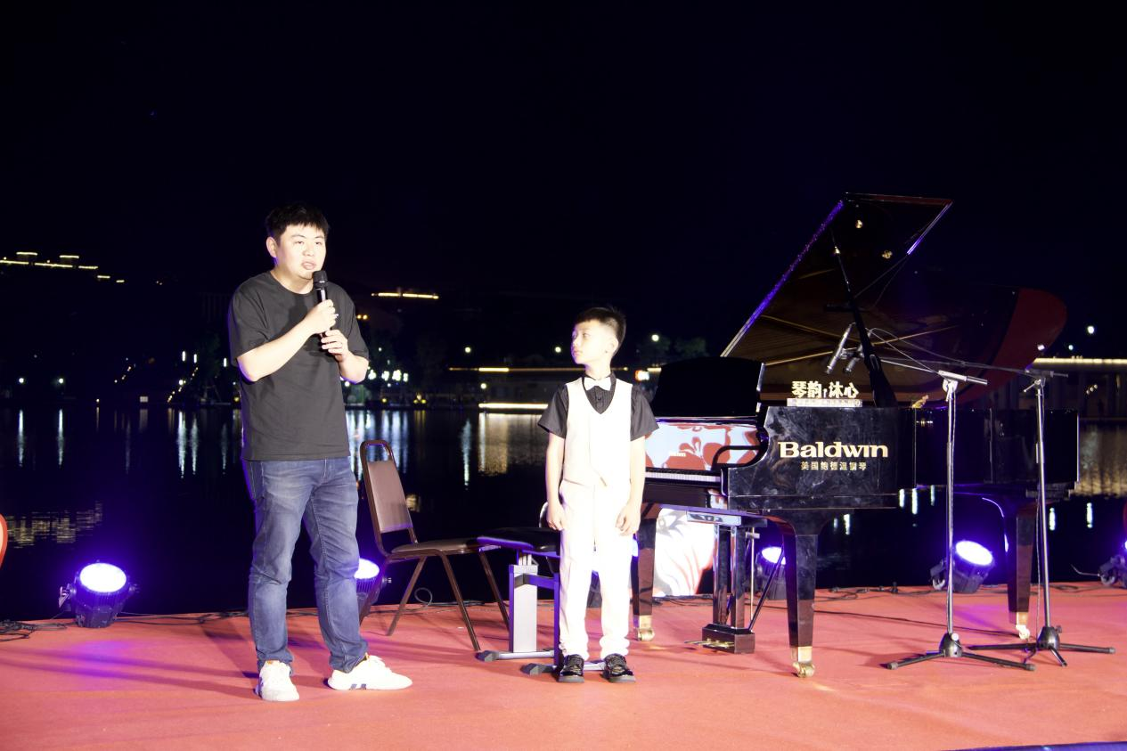 此次活动由浙江音乐学院钢琴系、武义县文化馆主办,演奏场地选在市民广场音乐驿站旁的湖面上,波光粼粼倒映着交错的灯光,悠扬的乐声伴随晚风飘荡,尽显浪漫气息。音乐会主奏由钢琴系武义籍学生徐若斌、徐若珂等担任,在钢琴独奏曲《浏阳河》中拉开帷幕,包含了《舞狂》《春舞》等中国近现代作品,以及《茉莉花》《彩云追月》《梁祝》等观众们耳熟能详的曲目,更有音乐大师莫扎特和勃拉姆斯的钢琴四重奏。钢琴系副教授黄翔还现场为当地的钢琴爱好者进行指导。音乐会雅俗共赏,在继承、弘扬、传播中华民族优秀传统文化、展现中国本土音乐文化的同时,也让百姓体验了中西音乐文化交融的魅力。后陈村副书记陈军表示,这是当地百姓第一次如此近距离感受古典音乐魅力,希望将来有更多便捷欣赏专业演出的机会。