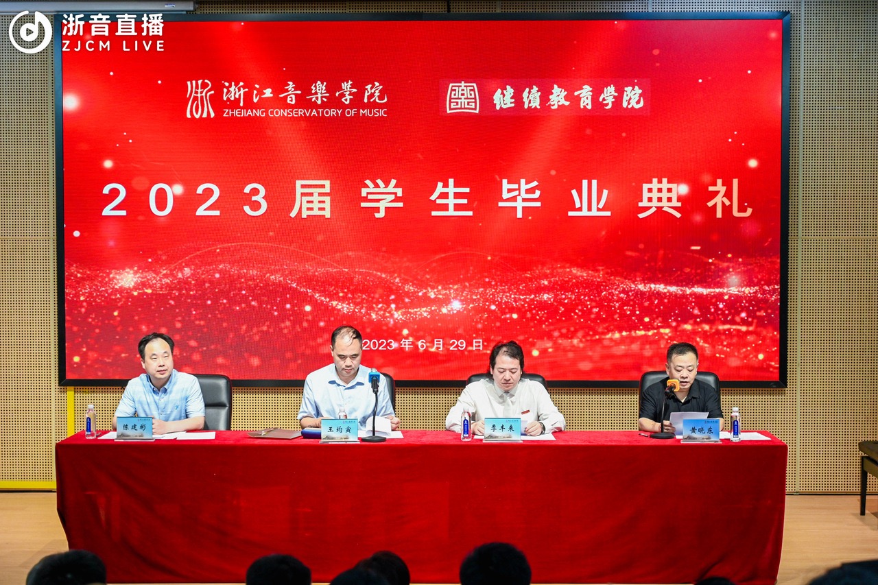 典礼上,教务处相关负责人宣读了《浙江音乐学院关于准予薛健等49名同学毕业的决定》。教师代表、学生代表分别进行了发言,部分毕业生献上了精彩演出。继续教育学院负责人宣读了《浙江音乐学院关于授予王炉翊等10名同学学士学位的决定》,并为获取学位的毕业生拨穗颁证。继续教育学院还为授课教师举行了聘任仪式。