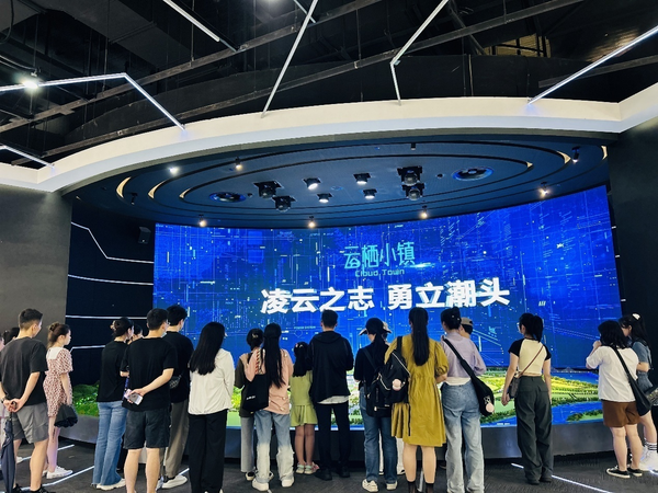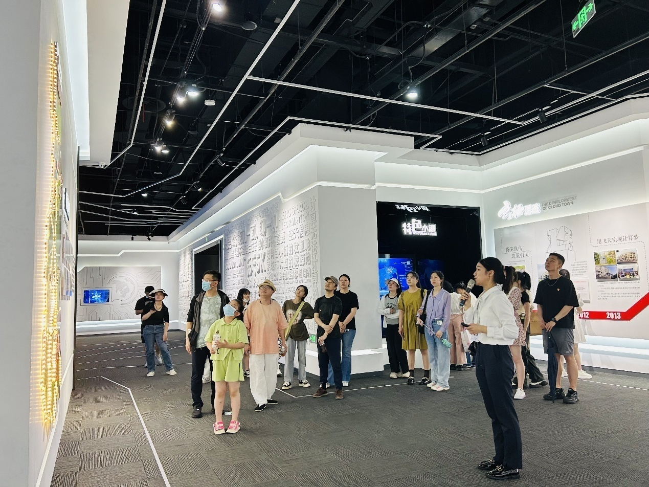 国乐系师生党员首先走进2050博悟馆,观看了用艺术形式讲述的科技故事。场馆通过绘画、装置、模型等多种艺术形式,将科技与艺术相结合,生动展示了科技的魅力和创新的力量,也展现当代人在互联网、大数据、人工智能和物联网等领域的科技创新成果。随后,大家参观了百草园展厅中,对生态环境建设、绿色发展的理念,以及科技的应用和发展有了更深入的理解。最后,师生党员走进在云栖小镇展厅,深入了解了云栖小镇的发展历程、城市规划、基础设施、科技力量、公共服务,以及现有产业特色等方面的成就和优势。同时,大家还在云栖飞行影院体验虚拟飞行,“俯瞰”西湖区的美丽景色和地标建筑。