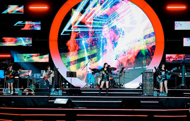 夜幕降临,人声鼎沸,演出拉开帷幕。音乐嘉年华以流行音乐系的《海阔天空》作为开场曲,奠定了“逐梦前行,永不言弃”的青春基调。随后,街舞社、原创音乐社、朗诵社等社团成员将唱、跳、诵、演结合,不仅充分展现了生机勃勃的青春活力,还融入了中华传统文化变脸等元素。随后,流行音乐系学生及校友带来《逃亡》《记得》《Drivers License》《落叶归根》《说了再见》等作品,全场打开手机闪光灯,点点星光随着音乐舞动。音乐嘉年华在杭州亚运会开幕式主题曲领唱、流行音乐系4位同学带来的亚运主题曲《同爱同在》中结束,进一步传递了亚运会同爱同在、共创未来的文化理念,为亚运精神的延续注入了无限活力。