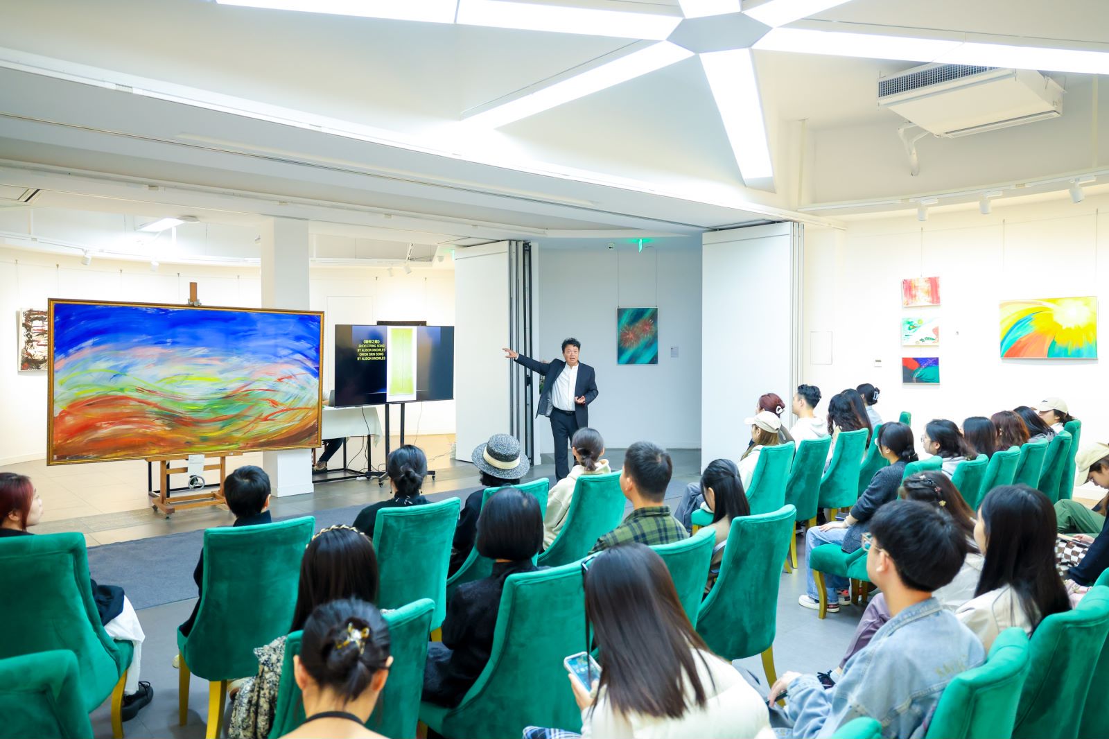 此次“看见音乐——智性联觉艺术作品展”是音乐艺术季的系列活动之一,是从学院2021级、2022级研究生《超越联觉:音乐—绘画跨学科理论与创作实践》课程中精心挑选的一批原创优秀音乐视觉作品的一次集中展示。该课程旨在探索音乐—绘画“智性的联觉艺术”,尝试为听觉艺术和视觉艺术融合道路解锁,培养和拓展学生的创意思维和想象空间。课程开展5年来,超越了一般的技术性框架,通过对“静态音乐形式”的分析理解、“动态音乐形式”的思考感悟,引导学生将内心的图形结构外化,让音乐视觉化,让创作过程更具鲜活性、感知力和表现力。此次展览的45幅作品是学院学生根据弦乐四重奏《灌顶》(Abhisheka)音乐,在“不设限”的情况下去捕捉心中关于音乐的完形“轮廓”,自由选择绘画、舞蹈图谱、演奏图谱以及图形乐谱等各种视觉形式来呈现的创造性艺术成果。