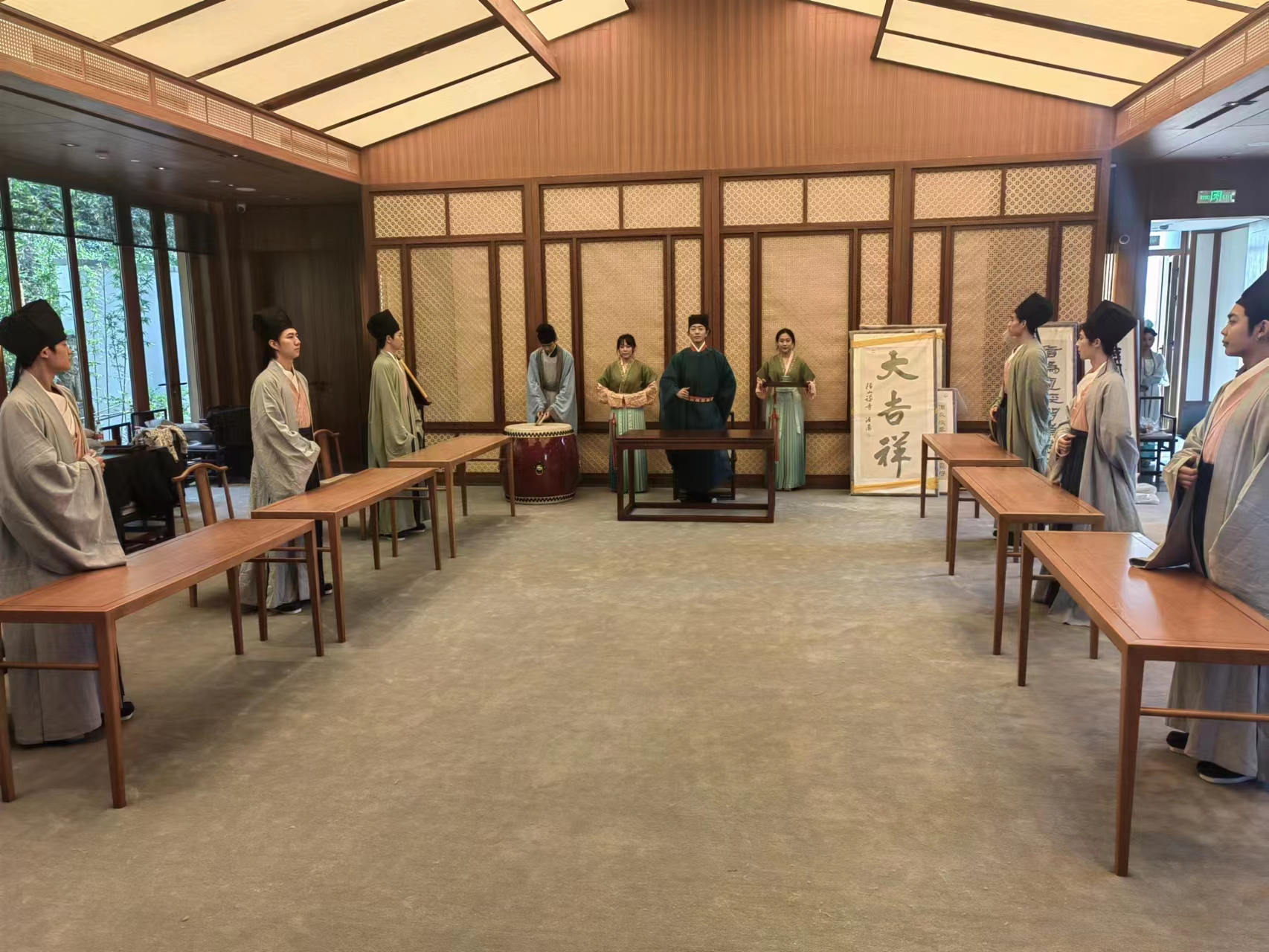 今年7月,学院围绕音乐文旅融合、世界遗产保护,与余杭区文旅集团等单位推动产学研合作,立项了“世界非物质文化遗产‘径山茶宴’(传承版)”横向科研项目,从理论研究、文化传承、创作编排和实践推广等多个方面,赋能提升“径山茶宴”的艺术品质,让非遗“活起来”、让文化“走出去”,扩大“径山茶宴”的文化内涵与时代价值。