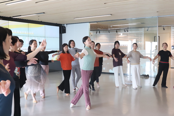 近日,由民族民间舞教研室青年教师孟婷婷为广大市民开展藏族舞蹈教学。她耐心指导市民们学习退踏步、抬踏步、连三步、七下退踏步等藏族舞蹈中堆谐的元素,细致讲述藏族舞蹈的特点,以及藏族传统舞蹈背后的文化内涵。芭蕾舞教研室主任、国家二级演员周瑾围绕芭蕾舞的五个脚位、蹲、立以及芭蕾演员的谢幕敬礼动作等,为广大市民开展芭蕾舞教学。为了让市民能够近距离感受古典芭蕾之美,舞蹈学院芭蕾舞专业的学生还为市民们表演了经典芭蕾舞剧《海盗》三幕片段。
