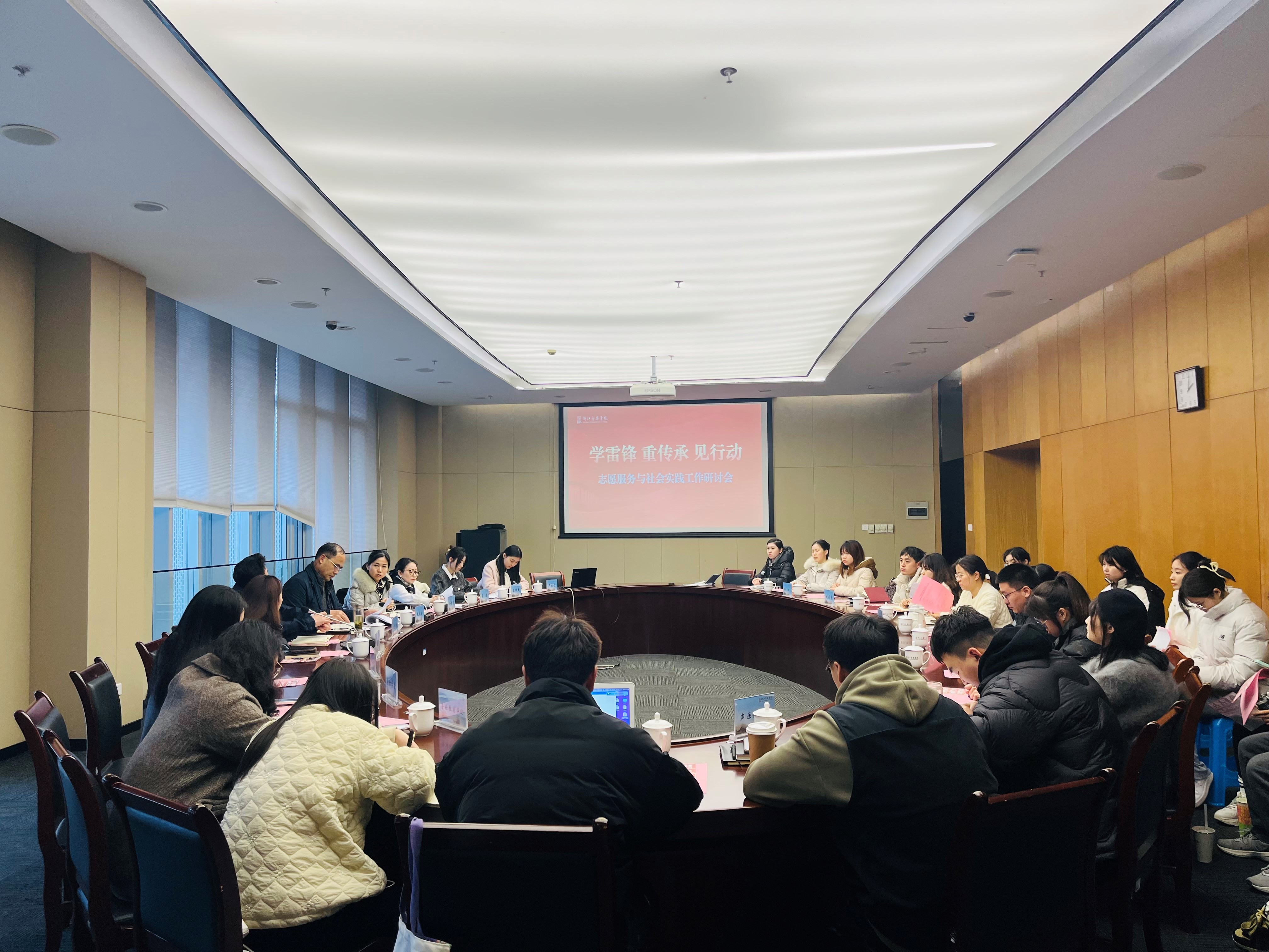 为贯彻落实卢山副省长来校考察调研讲话要求,提升我校志愿服务与社会实践工作能力,助推共青团工作再上新台阶。在第61个全国学雷锋纪念日,第25个中国青年志愿者服务日到来之际,我校举行“学雷锋 重传承 见行动”志愿服务与社会实践工作研讨会。学校党委副书记王均寅,团委、社会合作中心等相关部门负责人,各二级院系团干部,师生代表参加研讨。