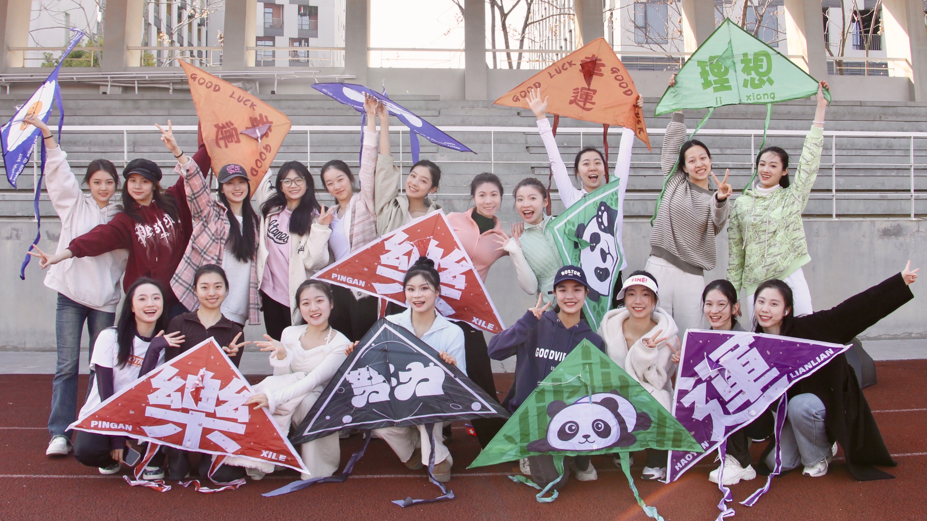 春光明媚,草长莺飞,花红柳绿,正是踏青好时节,舞院学子齐聚操场,放飞纸鸢,乐享春日的美好时光,在蓝天下共同绘制出一幅幅生动的画卷。每一次风筝的升空,都是对自我的肯定,每一次线的牵引,都是对团队协作的考验。青年学子们正如风筝在空中自由翱翔,勇敢地追逐着风的方向,不断挑战自我,超越极限。