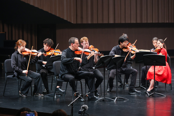 此次交流包括音乐会和大师班。音乐会以“源自海菲兹的传承”为主题,突出库尔曼作为著名小提琴演奏家海菲兹的关门弟子所传承的演绎风格,并带来包括埃尔加《e小调小夜曲》、维瓦尔第的《四季》、巴赫的《d小调双小提琴协奏曲》以及门德尔松《降E大调八重奏》在内的四部经典作品。其中,在对埃尔加《e小调小夜曲》(Op.20,第一乐章)的演绎中,由库尔曼领奏,ZHKD弦乐团和室内乐学院弦乐组学生同台演绎。尽管彼此之间也是首次合作,但面对音乐,大家所表现出的积极配合以及对音乐共同的理解,成就了“以乐汇友”的美好画面,凭借相互倾听与音乐沟通建立乐句间的平衡,以达到整体音乐效果的完美呈现,并以此获得台下听众的高度评价。