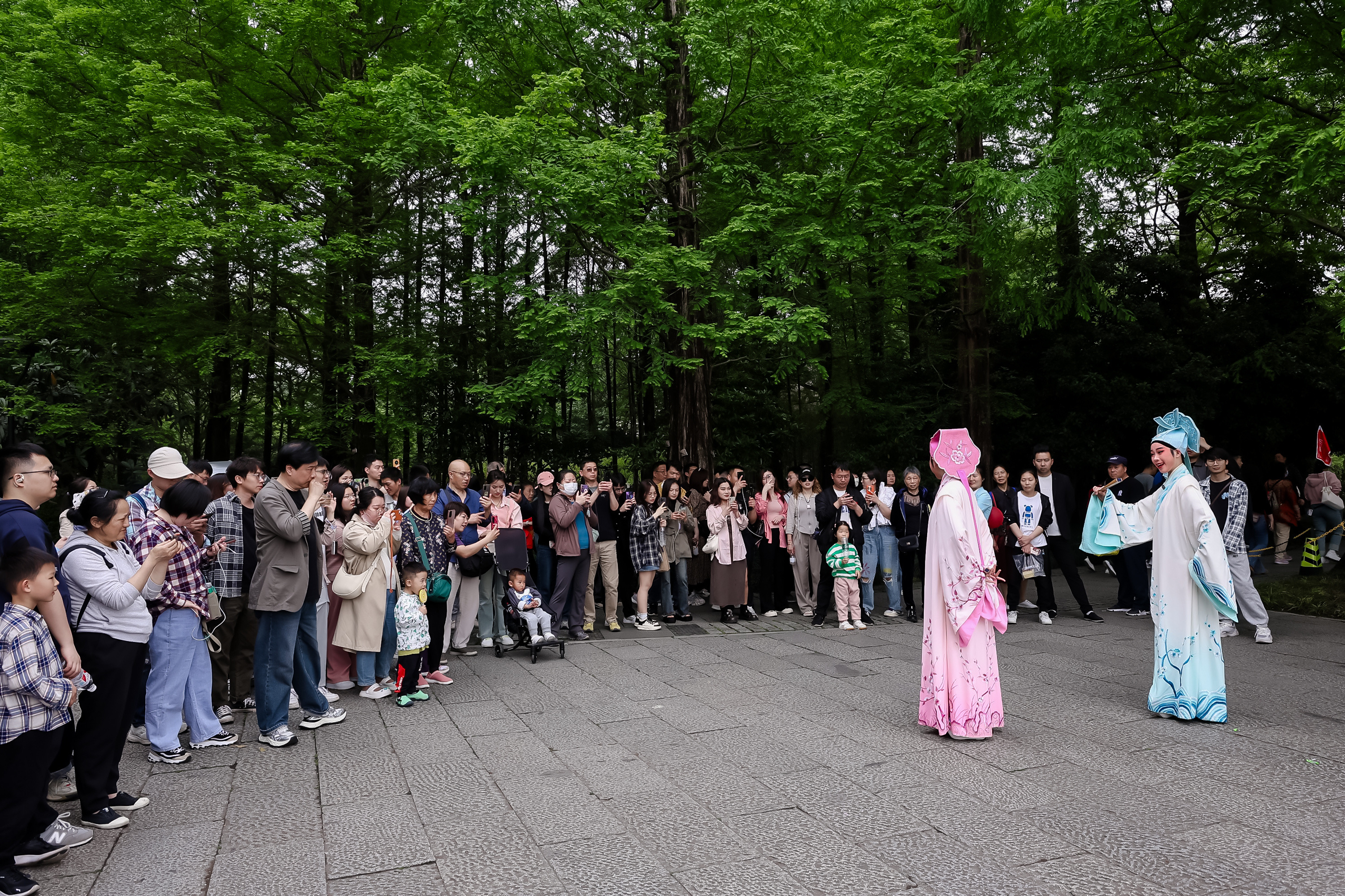 在柳浪闻莺、长桥公园、水南半隐......游客们纷纷与浙音学子近距离互动,沉浸式参与感受戏曲艺术的特色与魅力,成为当日西湖景区的一大亮点。