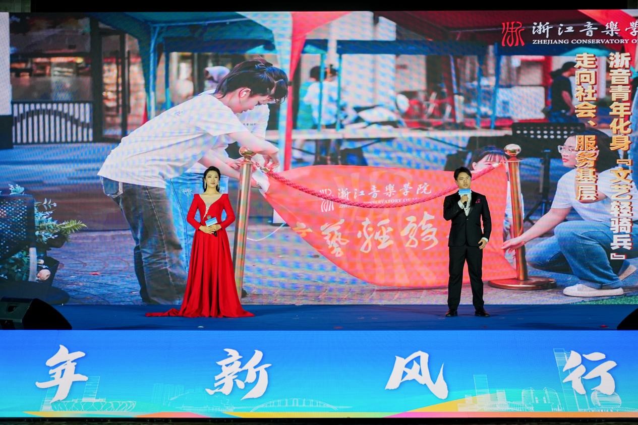 本次活动以“青年文明号”30周年为契机,通过“青年新风行动”启动仪式、“青”字号品牌青年化产品展演、“全国青年文明号”集体云参访、号长圆桌论坛等内容,深度探讨了“青年文明号”在传承红色基因、服务国家发展战略、引领青年风尚中的责任担当。其中,在“青”字号品牌青年化产品展演中,我校“文艺轻骑兵”倾情演唱歌曲,展现了浙音师生服务基层的生动实践。