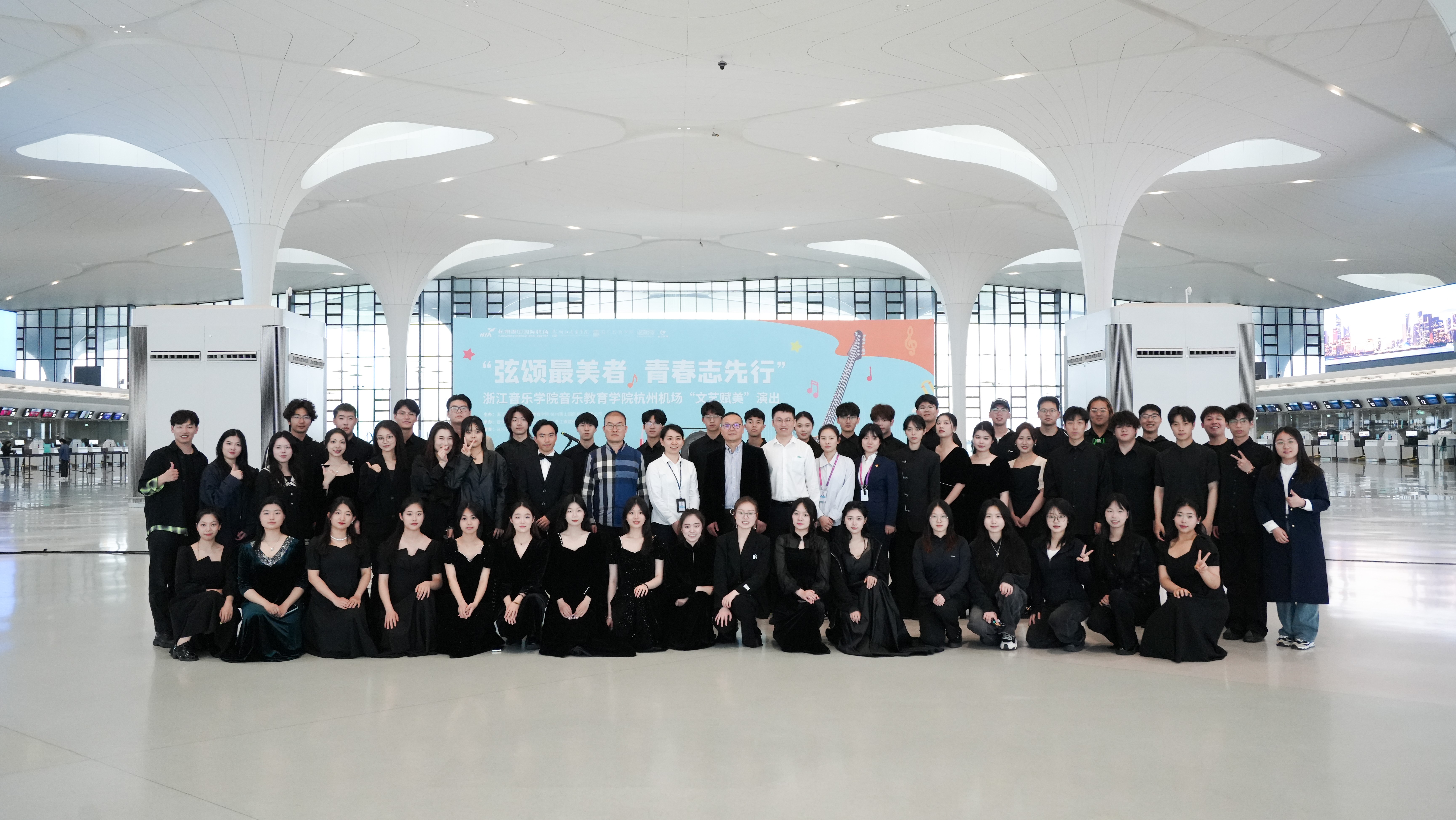 据悉,此次由音乐教育学院和杭州萧山机场携手策划的音乐演出,不仅是浙音音教青年奏响“青年文明号”践行“文艺赋美工程”的生动实践,更是“产教融合”助推高质量人才培养的深刻教学。音教“文艺轻骑兵”发挥了多能一专的特长,以弦乐赞颂最美劳动者,以琴声展现当代青年风采,以音乐为桥梁促进文化的交流和传播,以实践创新赋予传统音乐更多的温度与深度。未来,音教学院将持续参与推动“文艺赋美工程”,让文艺之美融入百姓生活,让高雅艺术“飞入寻常百姓家”。