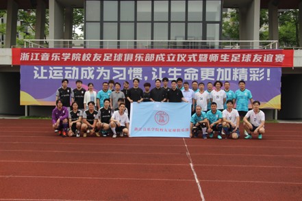 6月4日下午,浙江音乐学院校友足球俱乐部成立仪式在学校足球场举行。社会合作中心(校友办)、工会、团委等单位负责人,以及40多位校友代表、教工足球俱乐部会员、校团委学生足球社成员参加。