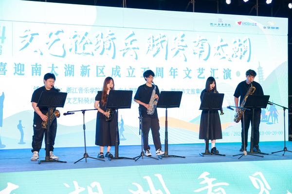 近日,湖州地标——南太湖新区月亮广场热闹非凡,掌声不断。由学院流行音乐系、音乐教育学院、戏剧系、舞蹈学院的近30名学生组成的“文艺轻骑兵”再次来到南太湖新区,用演唱、舞蹈、乐器演奏等表演形式,添城市活力,为文旅赋能,吸引众多市民驻足观看。