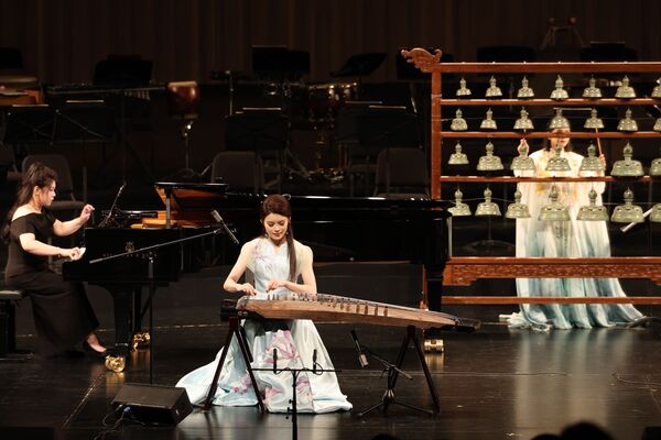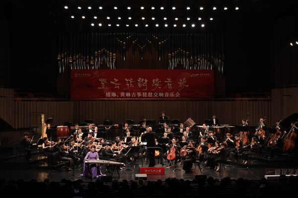 整场音乐会,贯穿中西、融通古今,既有传统之经典,又有时代之新编,有古曲之韵律,兼新作之潮流,其中《瓷韵东方》《乐在其中》两部作品为首发首演,《望云赋》《云想花想》为新编配版首演。校友楼琳曾荣获第13届中国音乐金钟奖古筝比赛总决赛入围奖、“新松人才”浙江省青年演奏员大赛民族器乐A组一等奖、浙江省第二届青年古筝演奏家大赛金奖等荣誉,并首演交响乐版《兰亭》、民族管弦乐版《万里无云》等筝乐作品;黄琳多次作为特邀琵琶演奏家参与中央芭蕾舞团大型芭蕾舞剧《沂蒙》、“相约维也纳——奥地利中国艺术节”等演出。两位青年艺术人才作为Z世代的民族音乐新生代,展现了中国民族音乐的生机活力与未来。“创新”“融合”“年轻”成为此次音乐会的最大特色亮点。