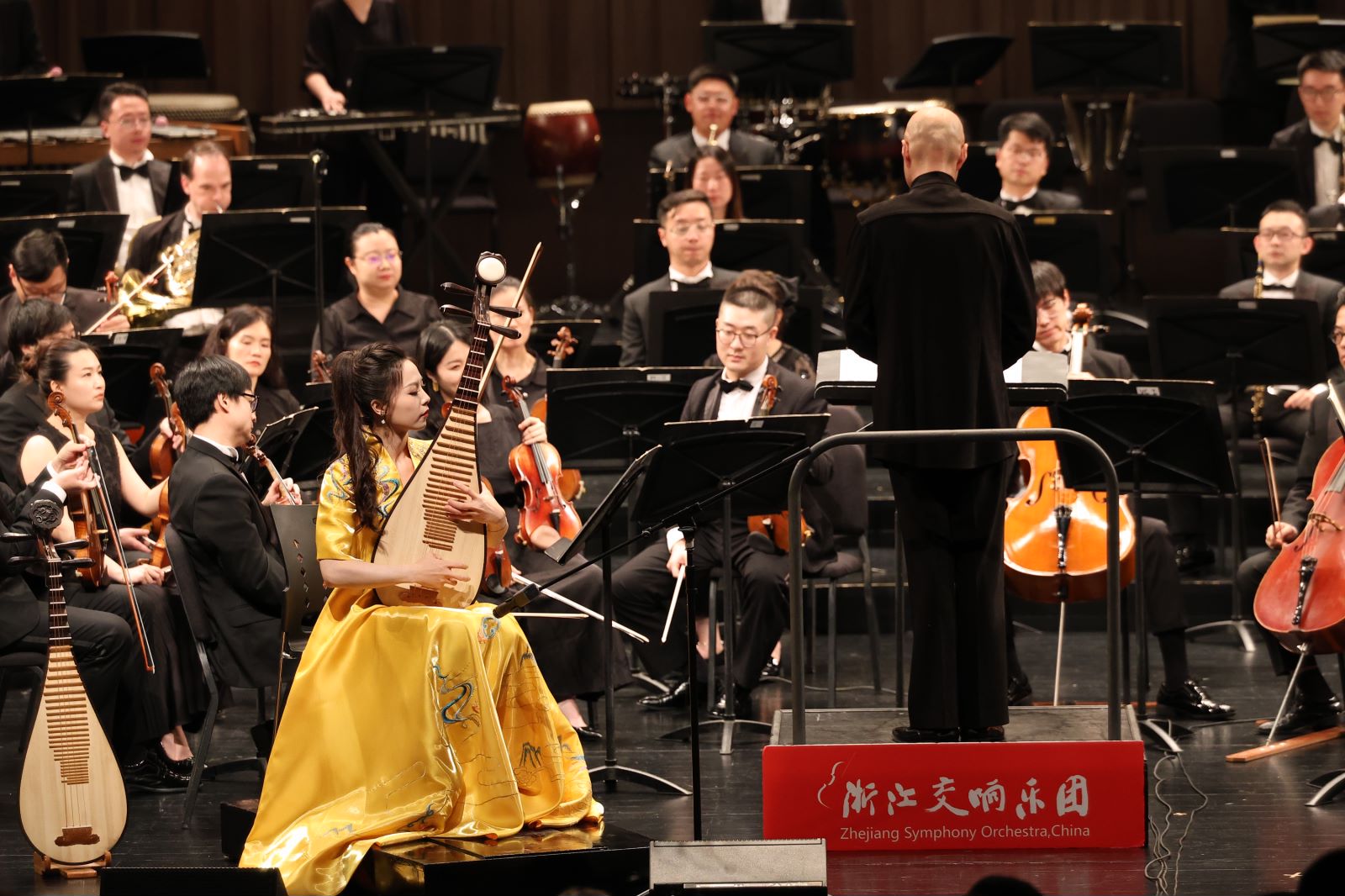 音乐会下半场由刘沙执棒,浙江交响乐团协奏。古筝协奏曲《望云赋》为纪念秦筝陕西流派领军人周延甲先生而作,运用《秦桑曲》《百花引》的乐思,结合交响乐的重新编配,深情抒发了对亲人的缅怀及追思之情。琵琶协奏曲《春秋》由著名作曲家唐建平创作,是中国当代最具代表性的琵琶协奏曲之一,乐曲气势宏大,内涵深刻,借“春秋”为题,抒发今日国人对民族古老、辉煌的文化成就的无限尊崇与赞颂。音乐会尾声是谭盾的《琵琶与古筝双重协奏曲》,该作品改编自其为美国Kronos四重奏创作的一部多媒体弦乐四重奏歌剧《傩戏》,分为“粗旷又幽雅的行板”“乡土却自由的快板”“巴赫与小白菜的柔板”“野性快板与爱的慢板”四个乐章,来表现幽灵与人的对话、山与水的对话、灵魂与生命的对话,充满了浓郁的中国色彩,以及现代与传统交织融合的音乐风格。