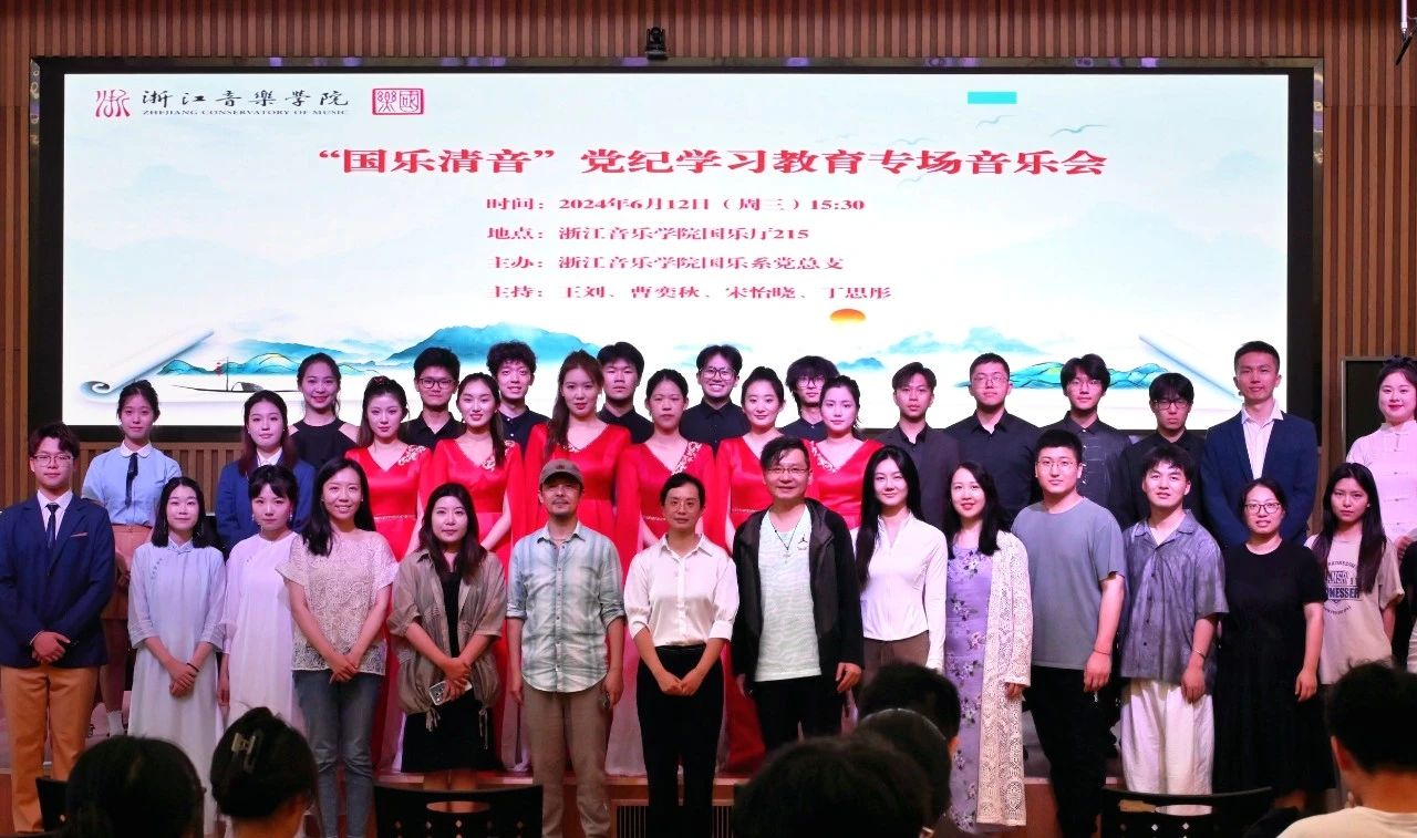 为贯彻落实习近平总书记关于党纪学习教育的重要讲话和重要指示精神,推动党纪学习教育进一步走深走实,6月12日下午,国乐系党总支举办“国乐清音”党纪学习教育专场音乐会。学院党委委员,组织部(统战部)部长、人才办主任李俊出席,系党总支成员、全体党员师生、发展对象以及入党积极分子80余人观看演出,60余名师生积极上台参演。
