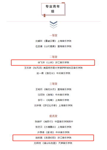 近日,由中央音乐学院举办的“星海杯”第二届中国风格钢琴作品作曲比赛结果揭晓,作曲与指挥系教师徐飞洋作品《心诉》荣获专业青年组二等奖,硕士研究生施航鹏作品《浪浸初阳》获专业青年组优秀奖(指导教师为张泽艺副教授)。