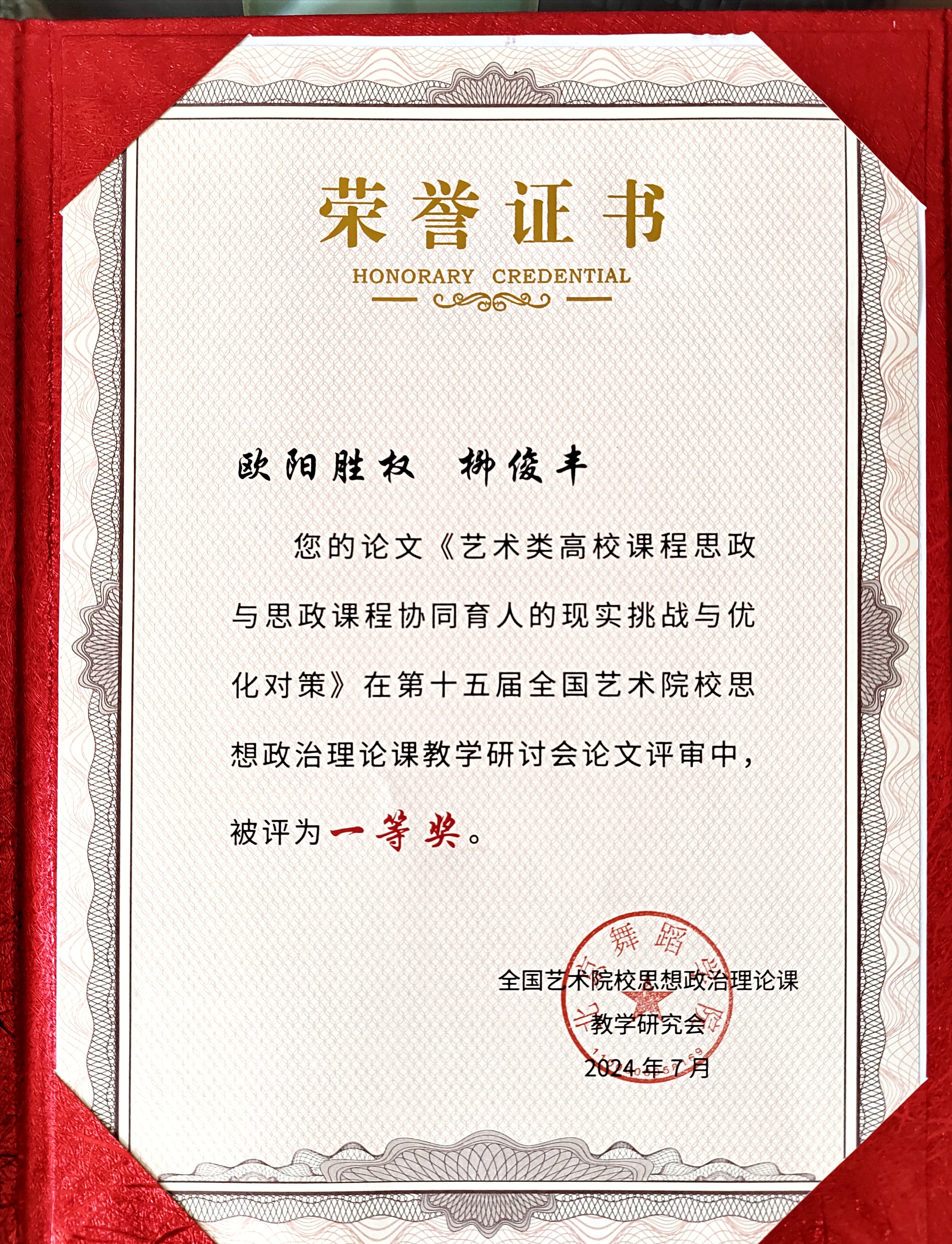 与会人员围绕新时代思政课教学改革创新等做与同行开展交流,并介绍了浙音近年来思政课建设的做法与成效。在研讨会闭幕式上宣读了研讨会论文评比获奖名单并颁奖,欧阳胜权副教授等撰写的文章《艺术类高校课程思政与思政课程协同育人的现实挑战与优化对策》获得会议论文评比一等奖。据了解,本次研讨会共收到220篇论文投稿,经过初筛、查重和专家遴选三个阶段,从文章的理论创新性、实践应用性、学术规范性综合考量,经研究会专家组评审决定,共评选出一等奖10篇,二等奖15篇,三等奖25篇。