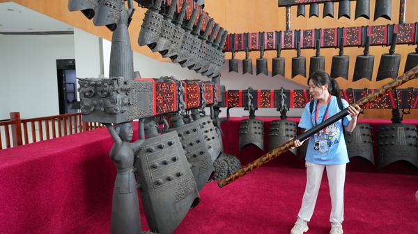 随后,学习团在讲解人员的带领下参观了音乐博物馆的四个展区,感受了编钟、编磬等来自五湖四海、古今中外的珍贵乐器。每一件展品都承载着厚重的历史与文化底蕴,学习团成员们深刻体会到了古代音乐千年传承的博大精深。学员们纷纷表示此次参观不仅让他们领略到了音乐的无限魅力,更为他们未来的音乐之路播下了一颗希望的种子。学习团一行还参观了施光南音乐艺术馆并乘摆渡车游览了南北区校园。