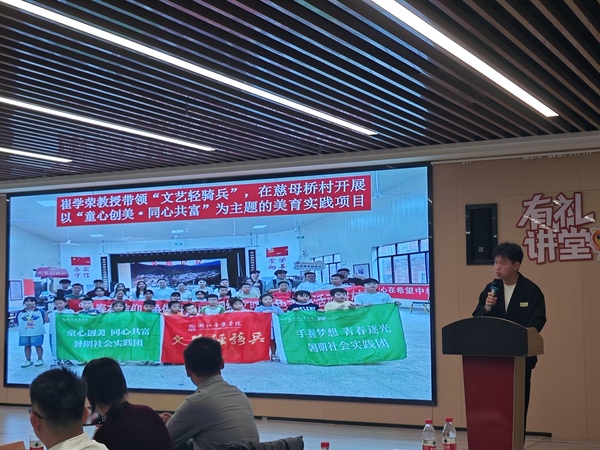 当日上午,团委负责人及浙音优秀青年学生代表参与“以青春赴山海,以志愿助共富”主题座谈会。会上,来自江山市和“青春帮共同体”成员单位的青年志愿者们围绕如何更好地服务乡村振兴和青年发展进行了深入交流和探讨。学校代表向与会青年分享了“文艺轻骑兵”在助推城乡精神文明共富道路上的志愿服务经验。随后,来自音乐教育学院的研究生代表以“文艺轻骑兵”的视角,以“童心创美 同心共富”为题,讲述了他们团队公益美育的实践经历,展示了“文艺轻骑兵”在服务内涵上的迭代升级。