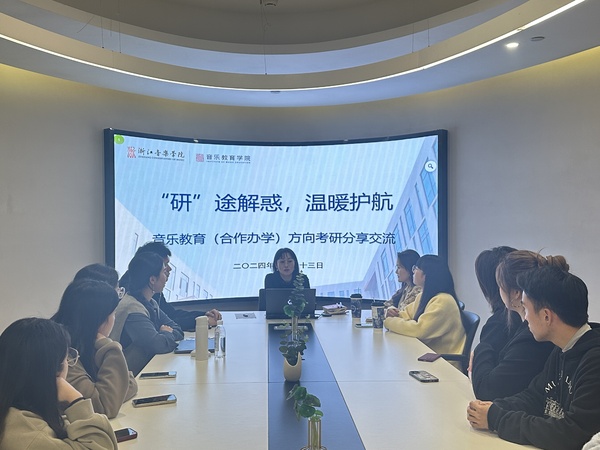 近日,音教学院在党群服务中心思政研习所开展了“‘研’途解惑,温暖护航”——音乐教育(合作办学)方向考研分享交流活动。音教学院负责人、辅导员以及有合作办学考研意向的本科生参加活动。同时,此次活动邀请了5位2024级首届音乐教育(合作办学)研究生介绍学校首个研究生教育中外合作办学项目并分享考研经验,旨在帮助2025年考研学子明晰研究方向与特色,为他们的“研”路答疑解惑,保驾护航。