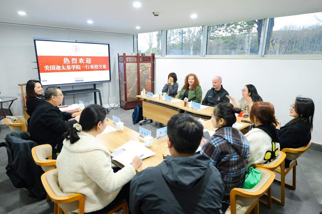3月14日下午,美国迦太基艺术与人文学院院长 Dr. Corinne Ness、音乐剧系主任Matthew Hougland,以及浙江艺术职业学院音乐剧专业学科带头人章小敏一行到访我校戏剧系。戏剧系主任、党总支副书记蒋巍,国际交流处相关人员,以及戏剧系师生代表在教师发展中心与来宾进行交流。
