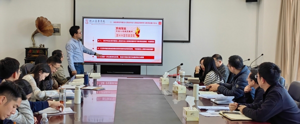 为深入开展贯彻中央八项规定精神学习教育工作,近日,人文社会科学部(马克思主义学院)在人文楼会议室召开学习教育专题辅导报告。部门充分利用专业优势,邀请思政教研室欧阳胜权副教授作题为“深入贯彻中央八项规定精神 助推教学科研育人高质量发展”的辅导报告。报告会由党总支书记高学峰主持,部门全体教职工参加。