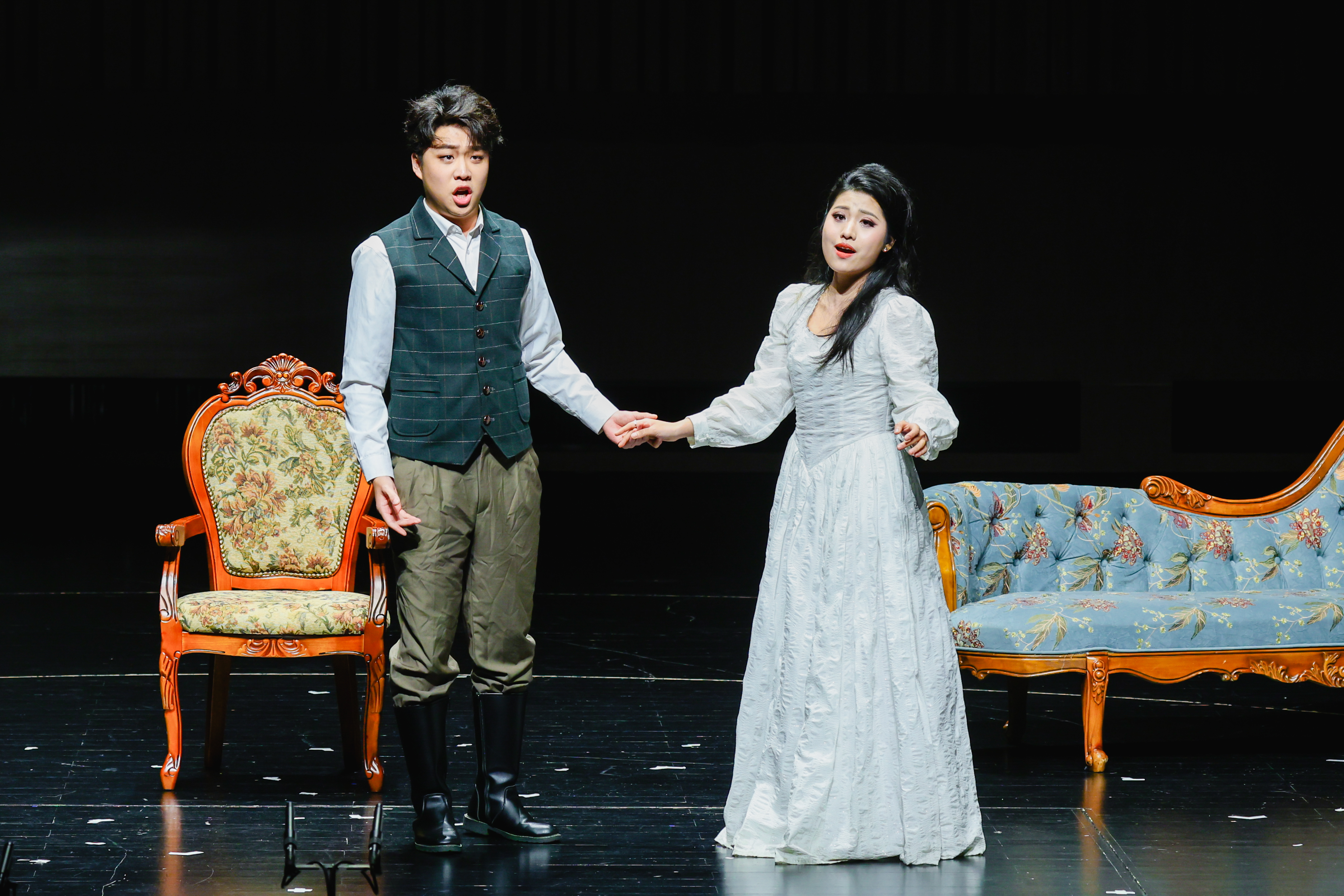 本场音乐会的选曲横跨三个世纪,既是向经典的致敬,亦是对学生能力的全面检验。学生们以扎实的唱功、细腻的情感诠释和默契的团队协作,将不同风格的作品演绎得淋漓尽致。在演唱莫扎特的经典唱段《帕吉诺,你已和我定了终身》中,学生们将角色间纯真的情感互动展现得活泼灵动,让人感受到莫扎特音乐中独有的天真烂漫与无忧无虑;面对威尔第作品时,舞台上的他们,每一个眼神、每一个动作都充满了强烈的戏剧表现力,让观众深刻体会到威尔第音乐中那震撼人心的戏剧力量;而在诠释普朗克等现代作曲家的作品时,他们用细腻的情感层次和独特的艺术表达,让观众感受到现代音乐的独特魅力。