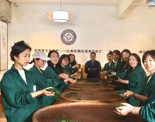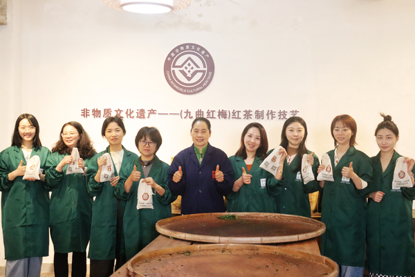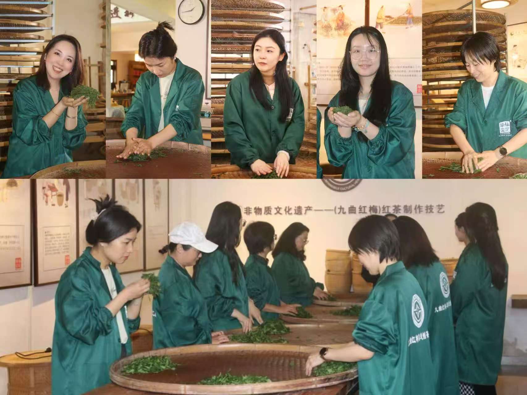 戏剧系工会精心挑选了杭州市西湖区的“省级非遗工坊”——杭州梅龙茶文化有限公司作为活动地点,并邀请到九曲红梅茶制作技艺代表性传承人鲁华芳亲自讲解茶文化、传授“揉茶”技艺。