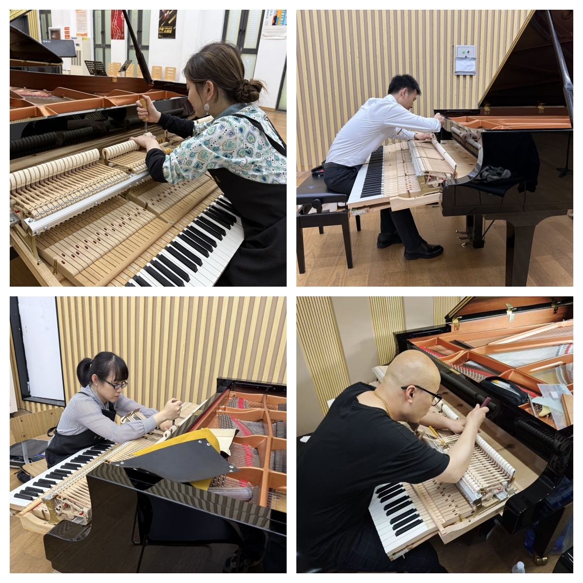 会后,雅马哈一行走访了钢琴系、音乐教育学院及排练厅,对钢琴进行现场整调服务,并针对师生日常使用中的问题进行专业解答。