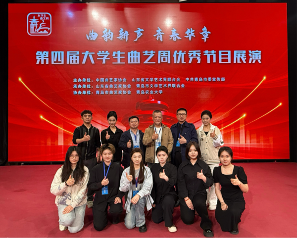 为深入学习贯彻习近平文化思想,推动中华优秀传统文化在校园的传承与创新发展,丰富校园文化内涵,提升大学生审美情趣和艺术品格,5月10日,由中国曲艺家协会、山东省文学艺术界联合会、中共青岛市委宣传部主办的“曲韵新声 青春华章”——第四届大学生曲艺周优秀节目展演走进青岛农业大学和青岛科技大学。我校戏剧系优秀原创作品绍兴莲花落《野蜂飞舞》与说唱节目《后悔来不及》入选展演名单。