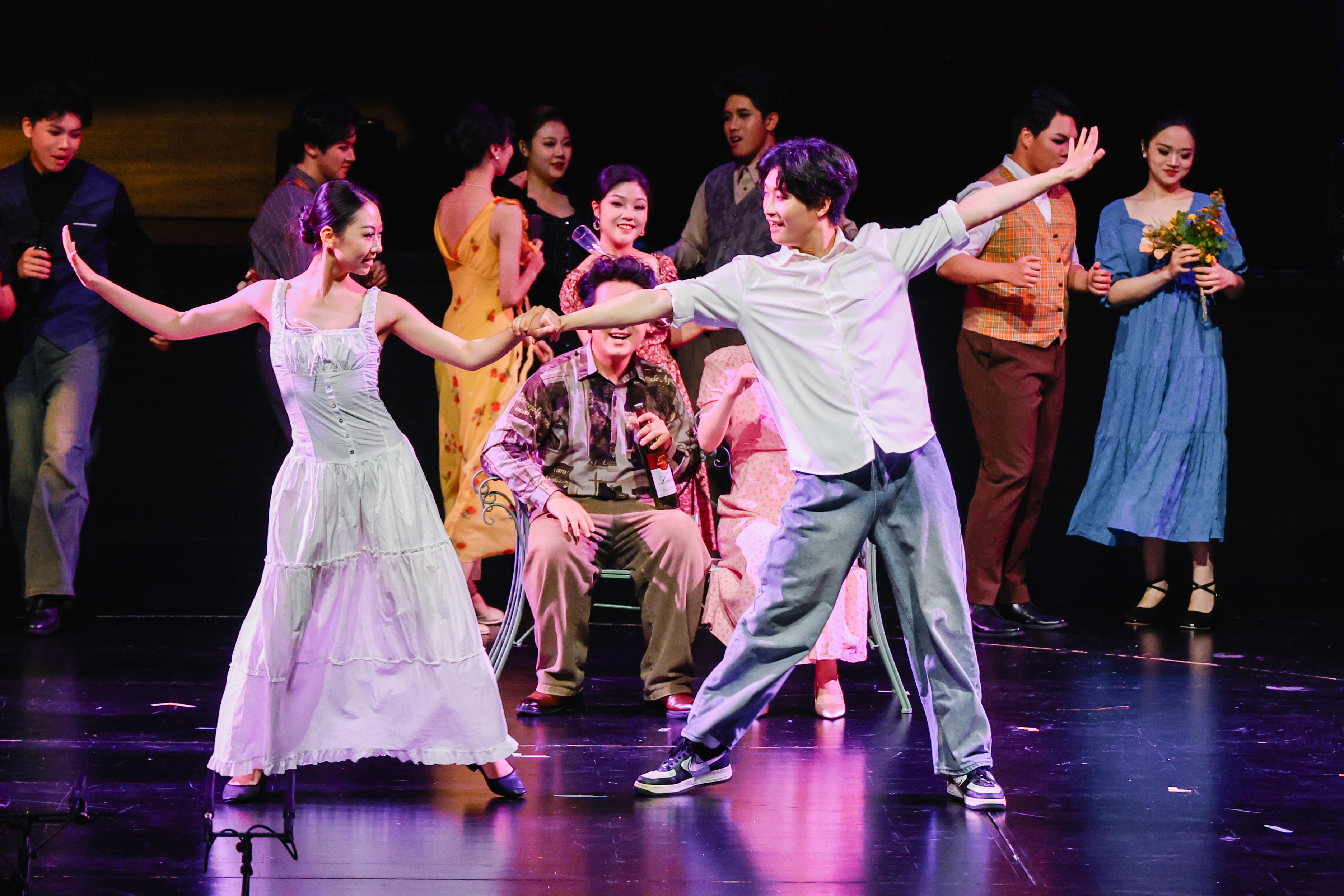 在国际导师团队的协同打磨下,学生们以“三棱镜”般的多面能力惊艳舞台:陈艺田从叛逆的蒂蕾西亚到悲情的小福子,以声线无缝切换展现对角色的深刻理解;周子泰在油滑的拉库夫与市井车夫间自由游走,其灵动神情与肢体喜剧凸显学院对角色塑造的全面锤炼;多莉雅则以虎妞的双面演绎与克拉拉的爵士吟唱,印证了表演收放自如的教学成果。