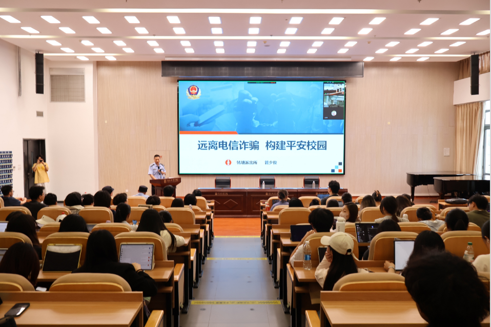 为增强学生防骗反诈意识,构建平安和谐校园环境,6月4日下午,音乐教育学院特邀转塘派出所管少俊警官等一行来院开展“远离电信诈骗 构建平安校园”专题讲座。后勤与校园安全处副处长、音教学院党总支负责人、音教学院辅导员及全体本科、研究生参加了此次讲座。