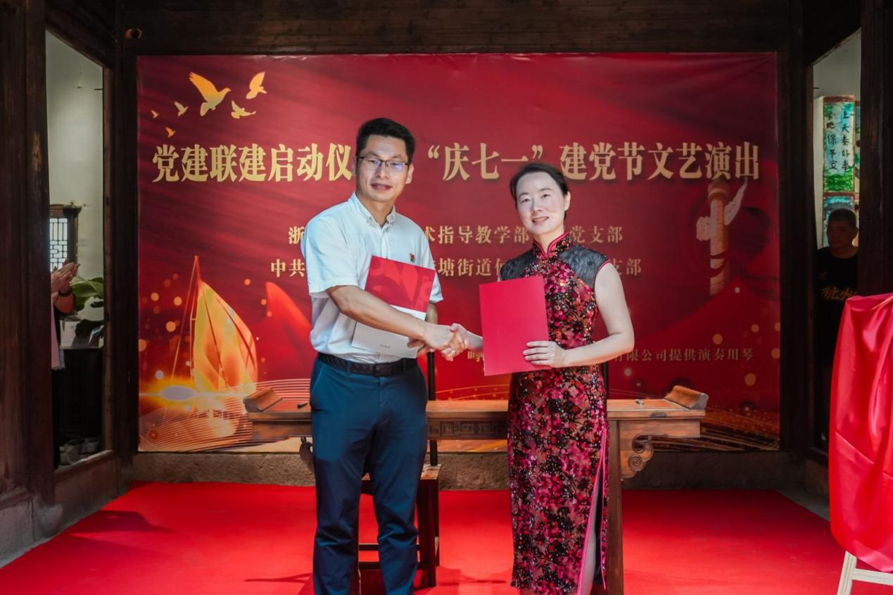 为深化党建引领基层治理,推动校地资源共享、融合发展,6月21日上午,艺术指导教学部直属党支部与转塘街道何家埠社区党总支举行党建联建启动仪式暨“庆七一”文艺演出。此次联建以党建为纽带,通过校地资源共享、优势互补,探索基层治理新路径,开启合作共赢新篇章。