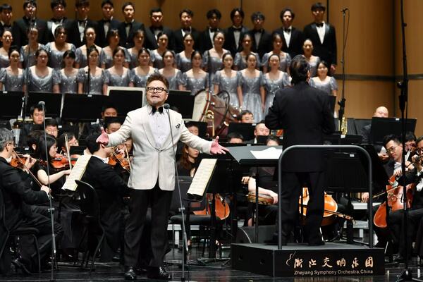 9月8日晚,由浙江省文化广电和旅游厅指导、浙江交响乐团举办的纪念中国人民抗日战争暨世界反法西斯战争胜利80周年“黄河大合唱”交响合唱音乐会在运河大剧院·歌剧厅精彩上演。学院声乐歌剧系教师严圣民、马亚囡受邀参与演出。